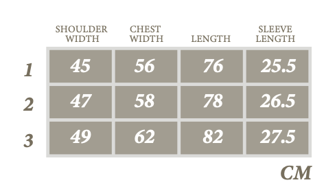 Size 03 衣長80 / 肩寬45.5 / 胸寬61 / 袖長28