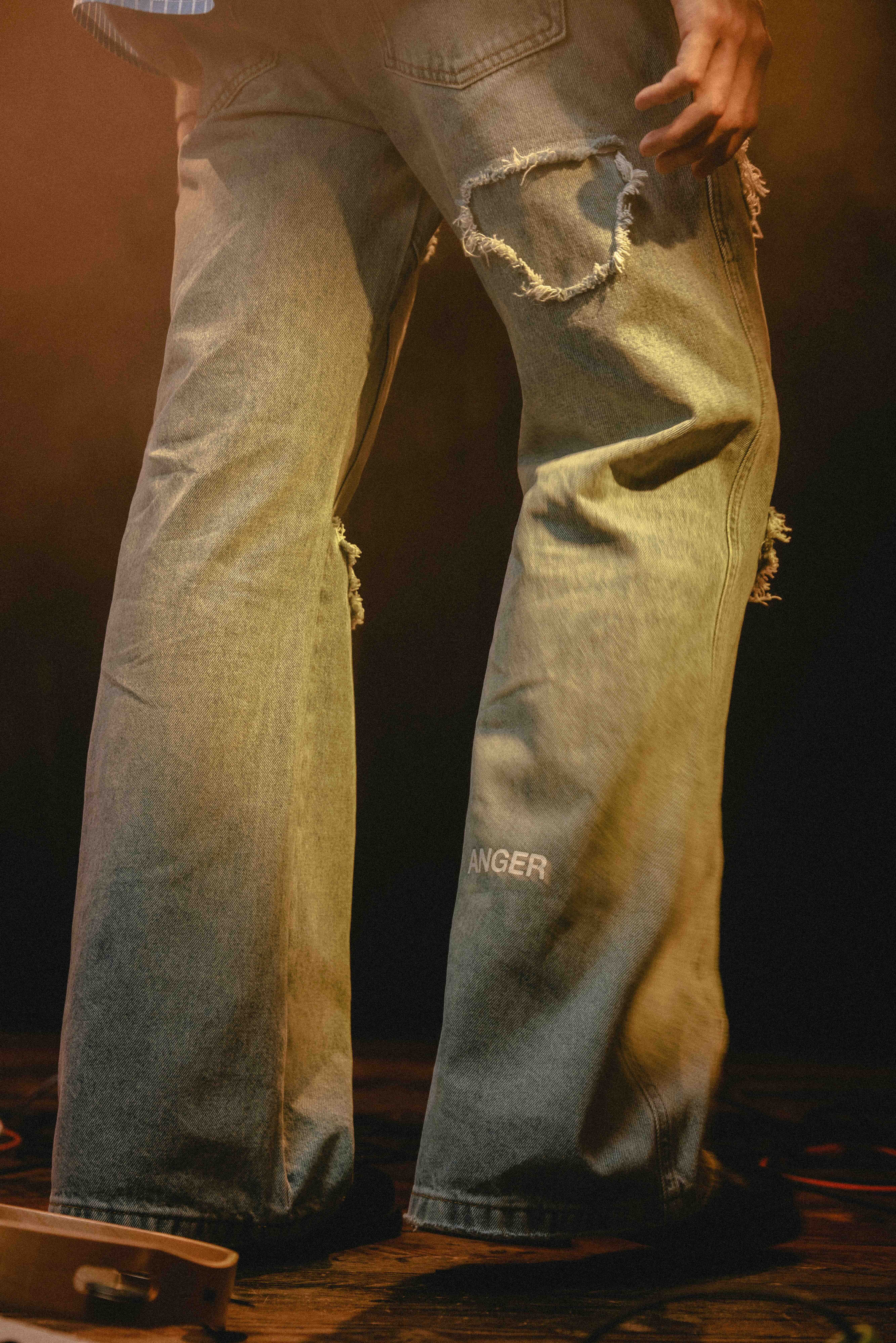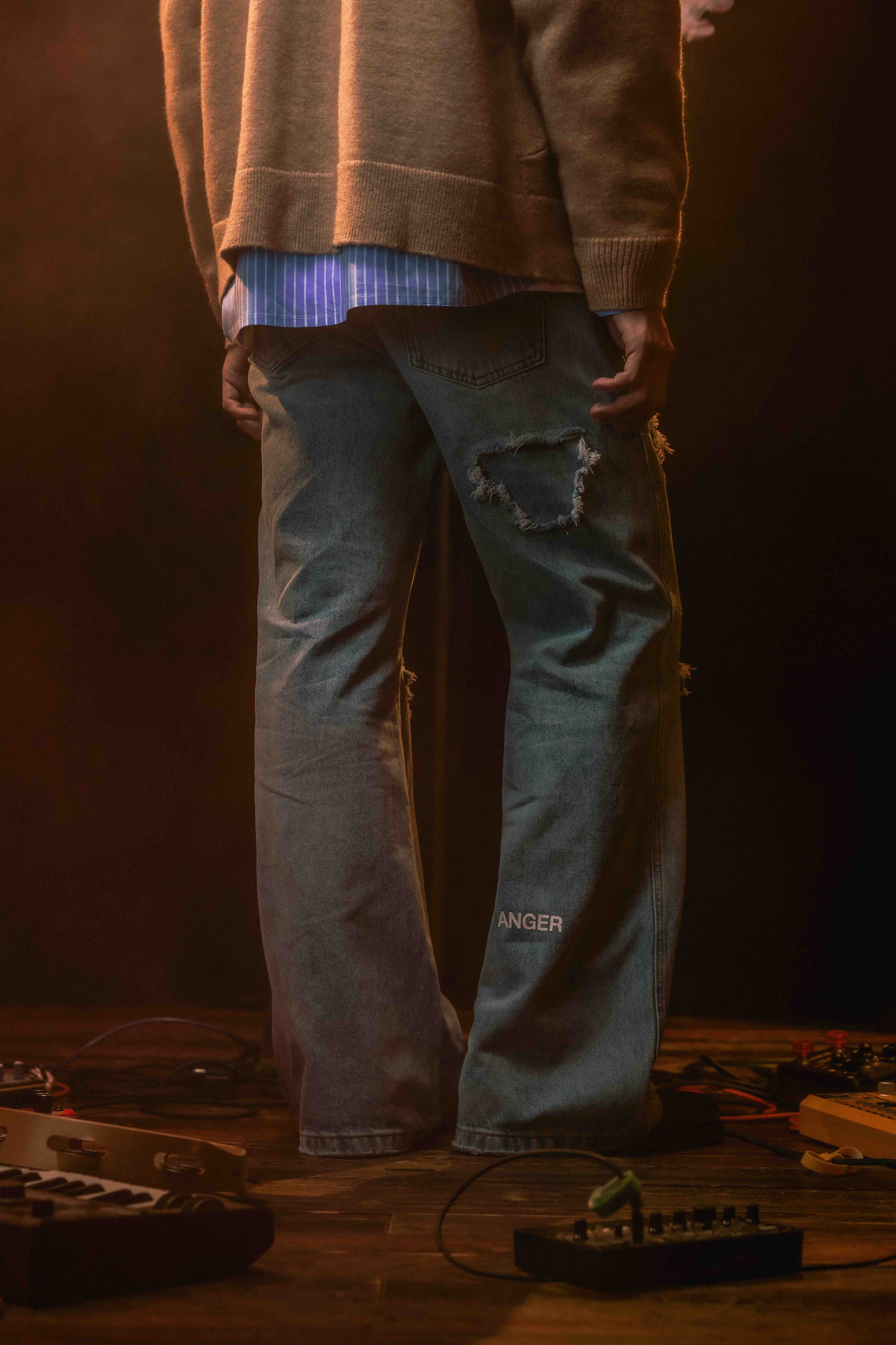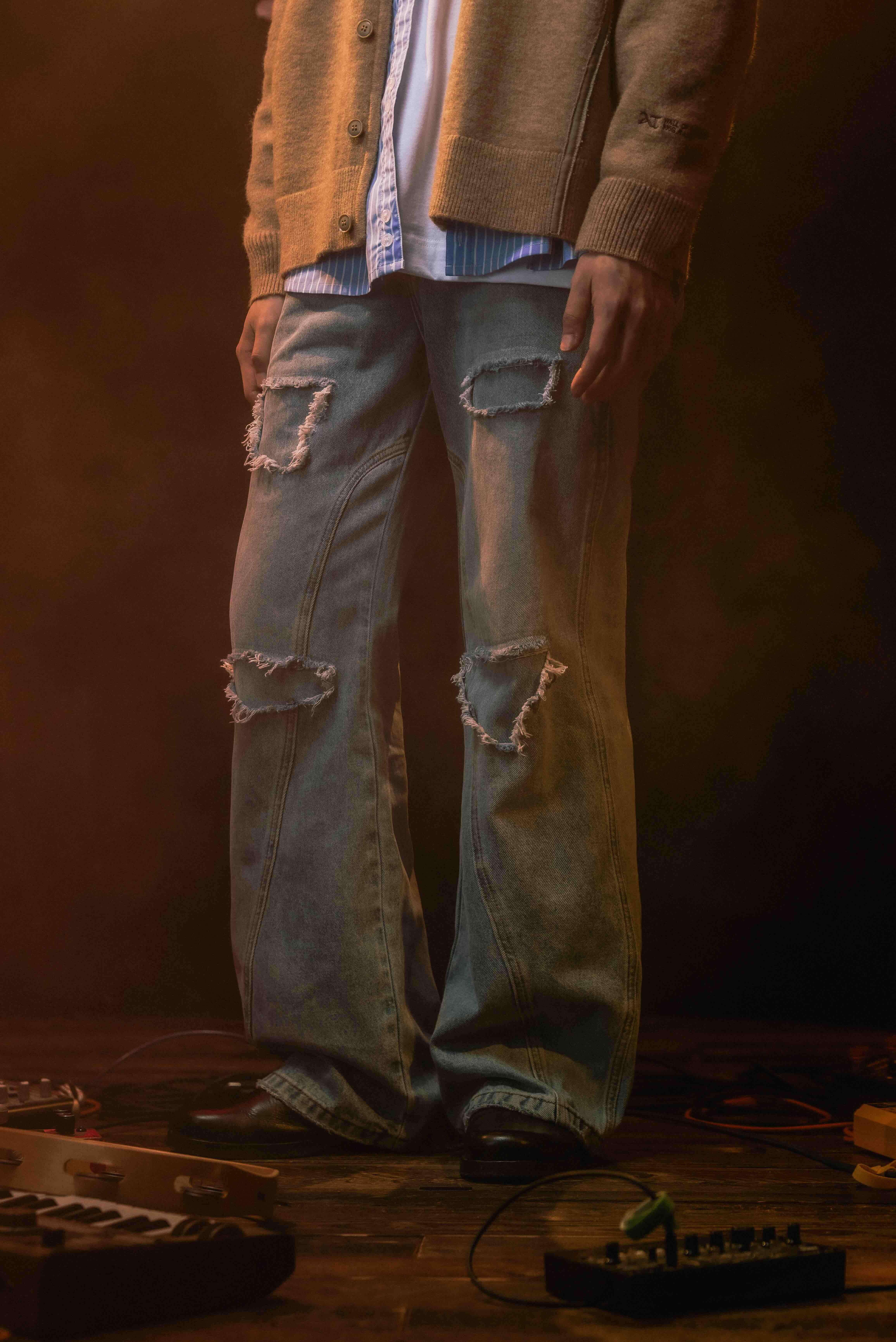 WA09-“ANGER” PATCH DENIM PANTS (FADE BLUE)