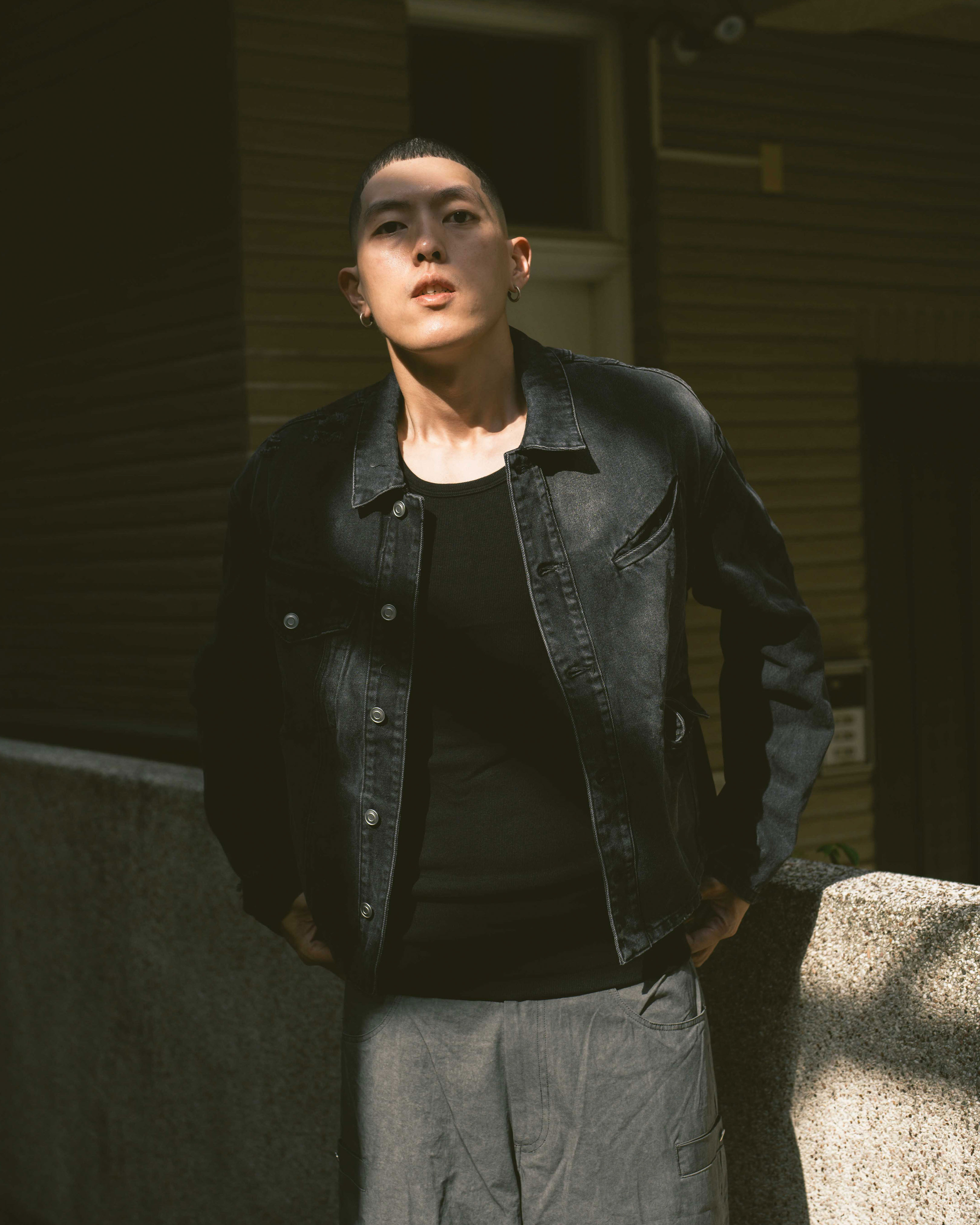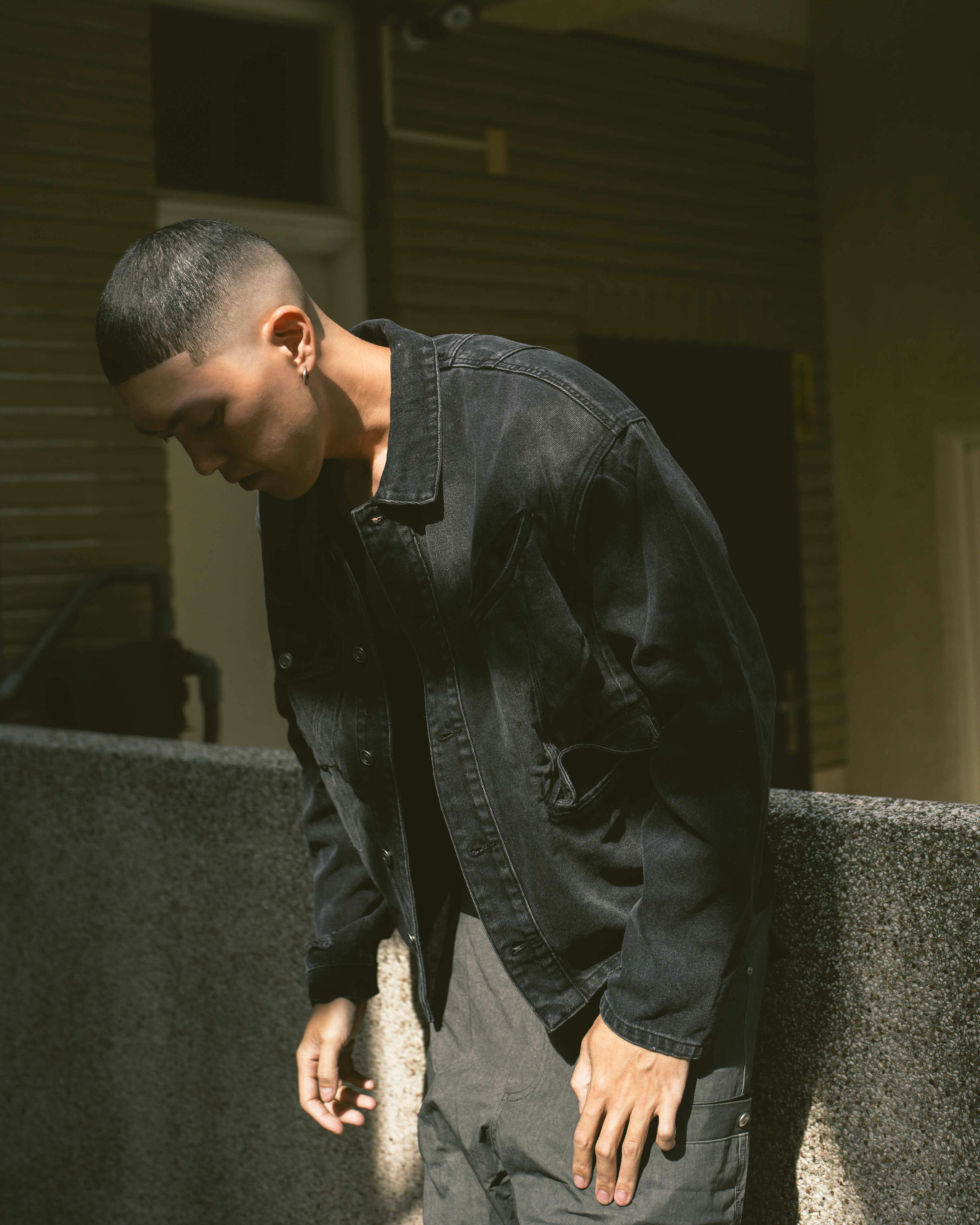 Anonymous Talking / Asymmetrical Denim Jacket - Black