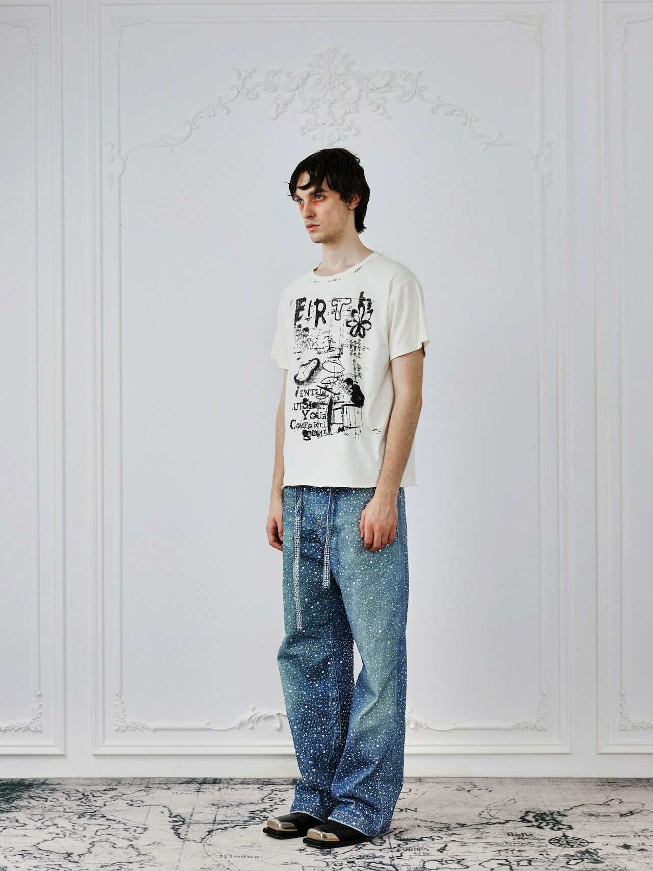Band Album 系列靈感,源自節奏藍調(R&B)的慵懶與韻律美學,搭配仿舊水洗與反摺下擺設計,呈現率性不羈的復古態度。