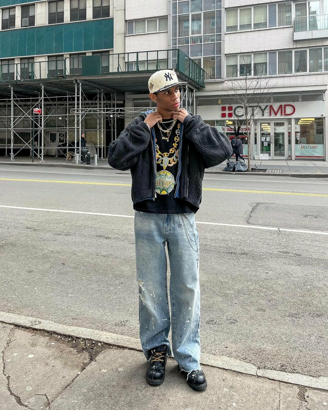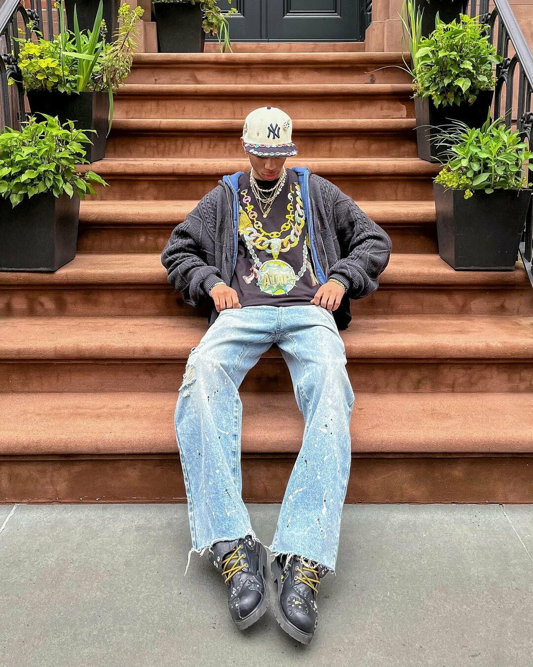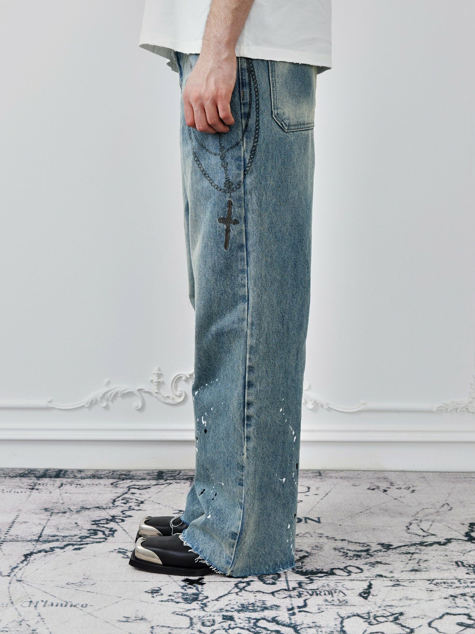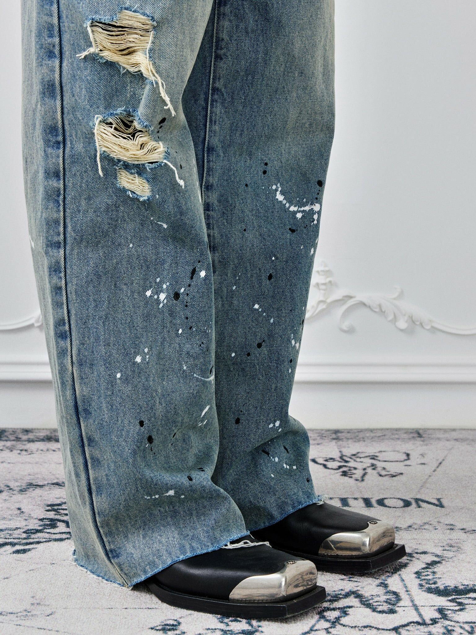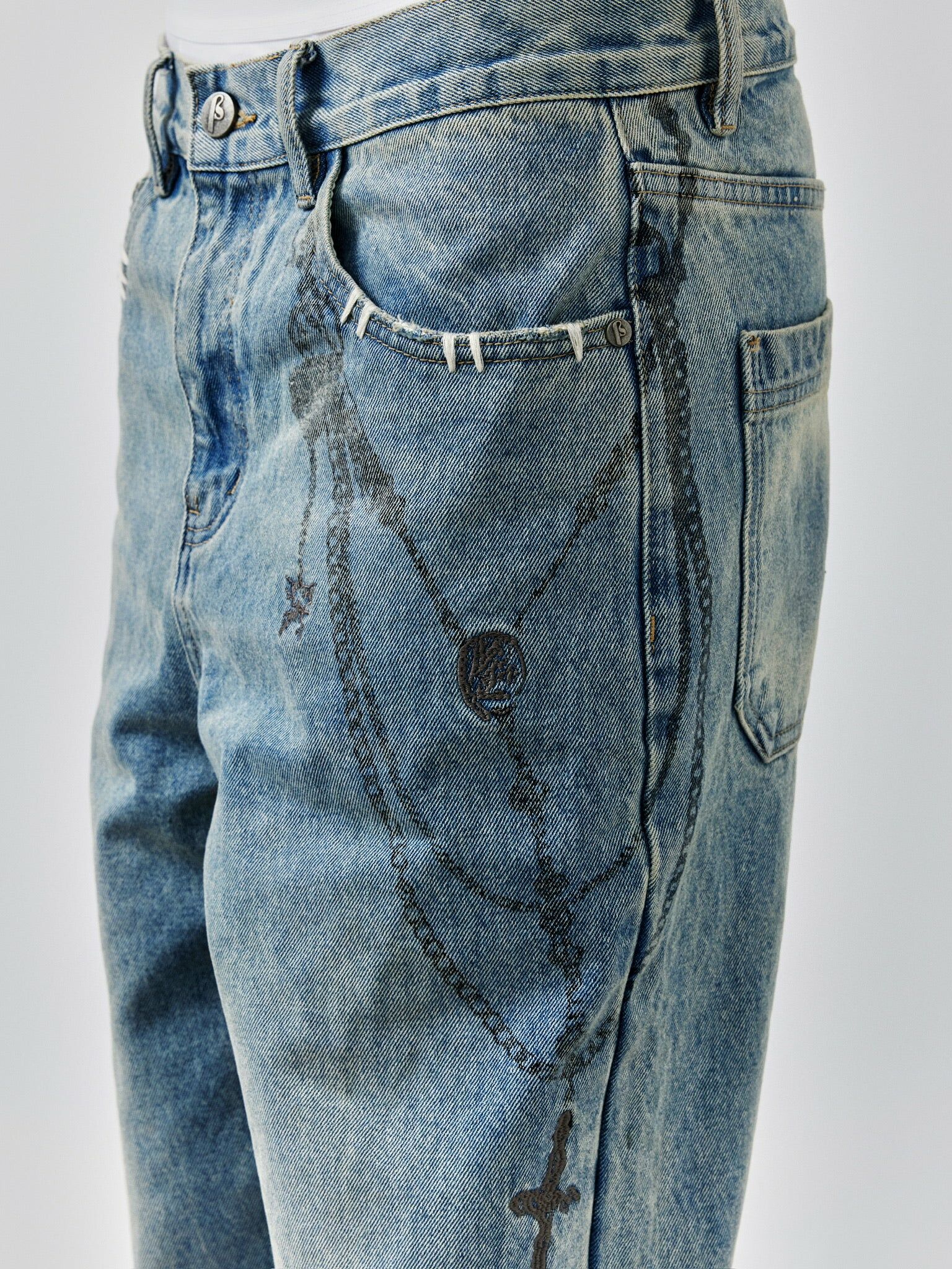 經典直筒剪裁結合層次印花與手工潑墨處理,復古美學與工藝細節交織的設計單品。