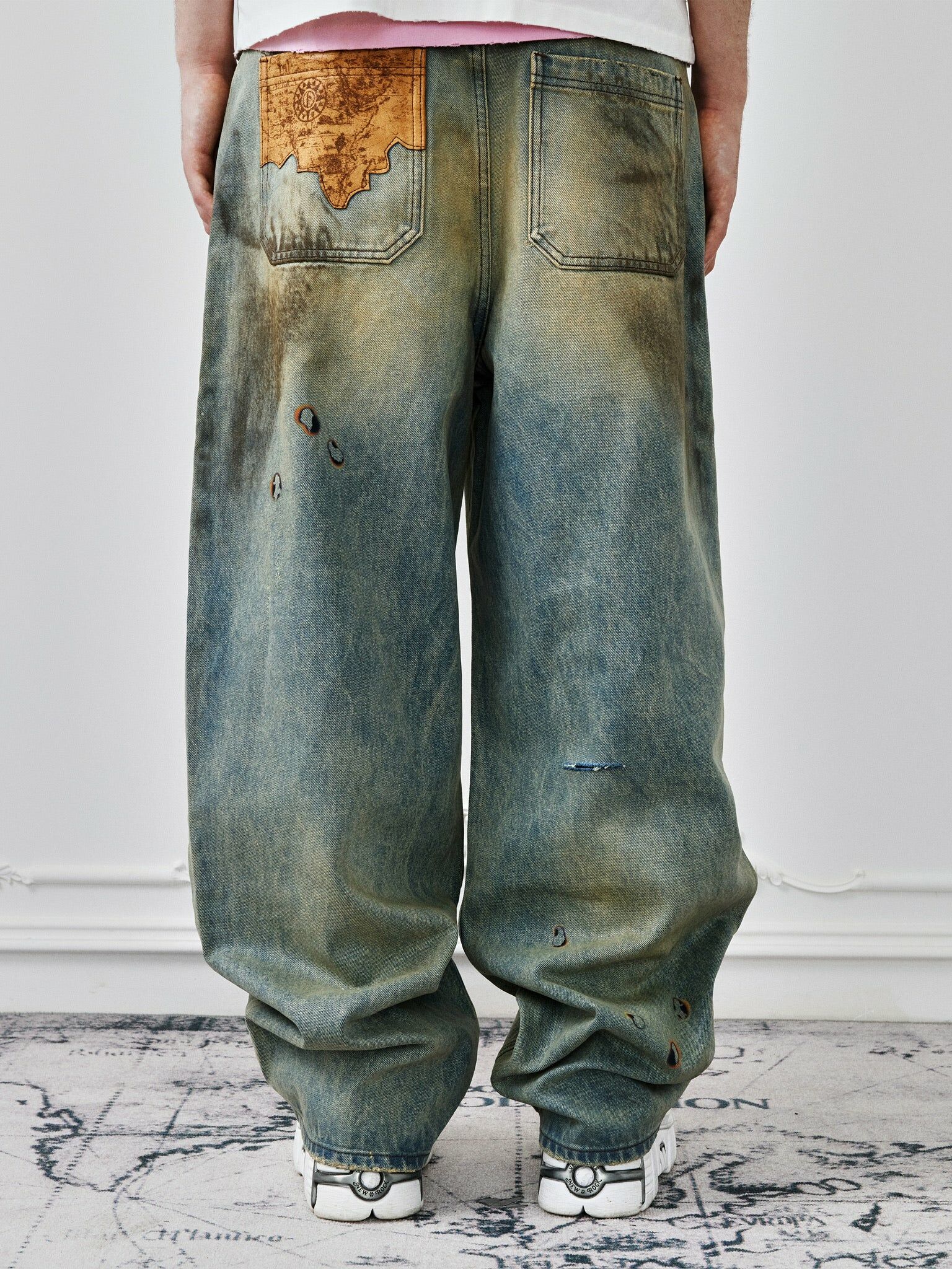 靈感來自中古世紀遊牧貴族的傳說,將復古美學與精緻工藝融入寬鬆丹寧褲中。