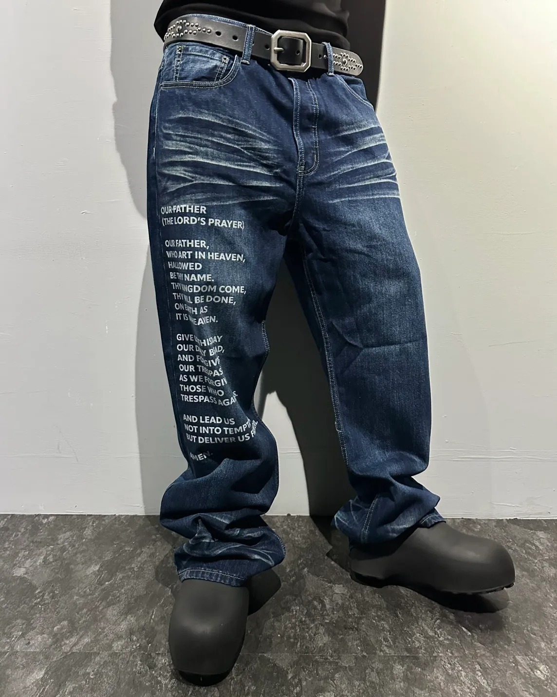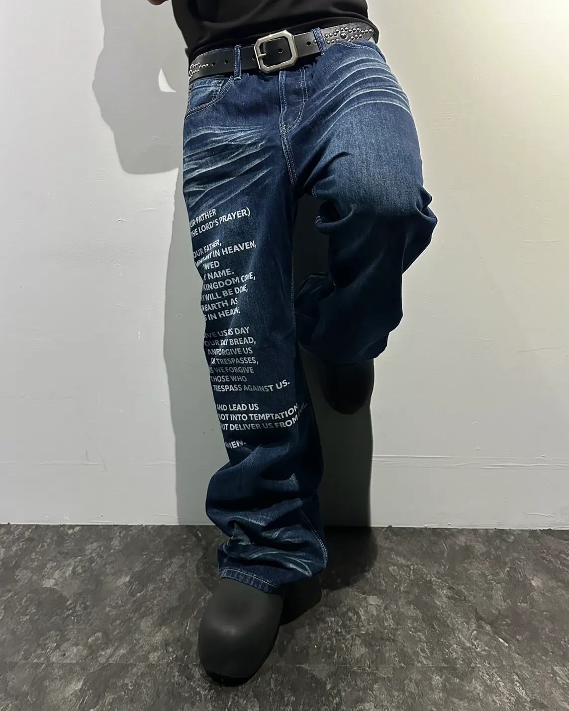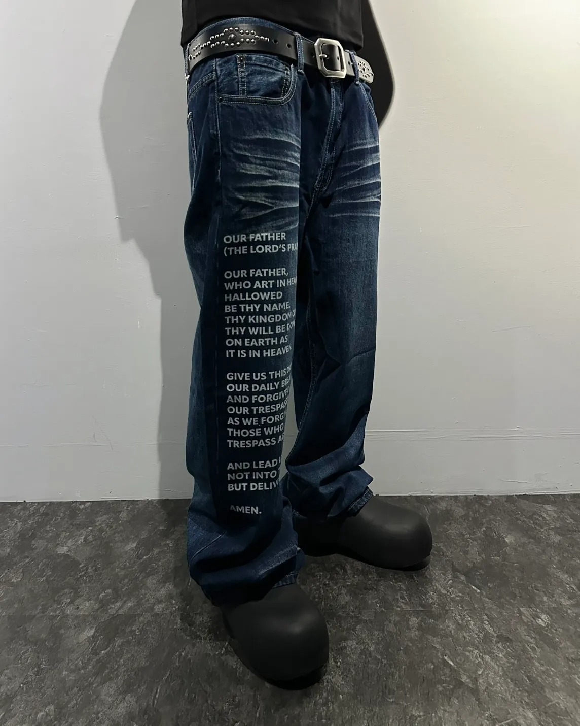 商品名稱|Bootlegway BTLG Lord's Prayer Blue Washed Denim Jeans