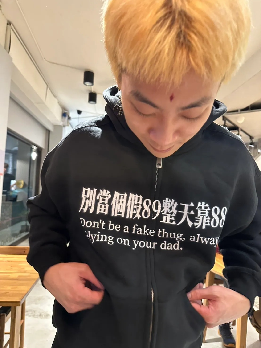 商品名稱|Bootlegway|"DON'T BE A FAKE THUG" Zip Up Hoodie