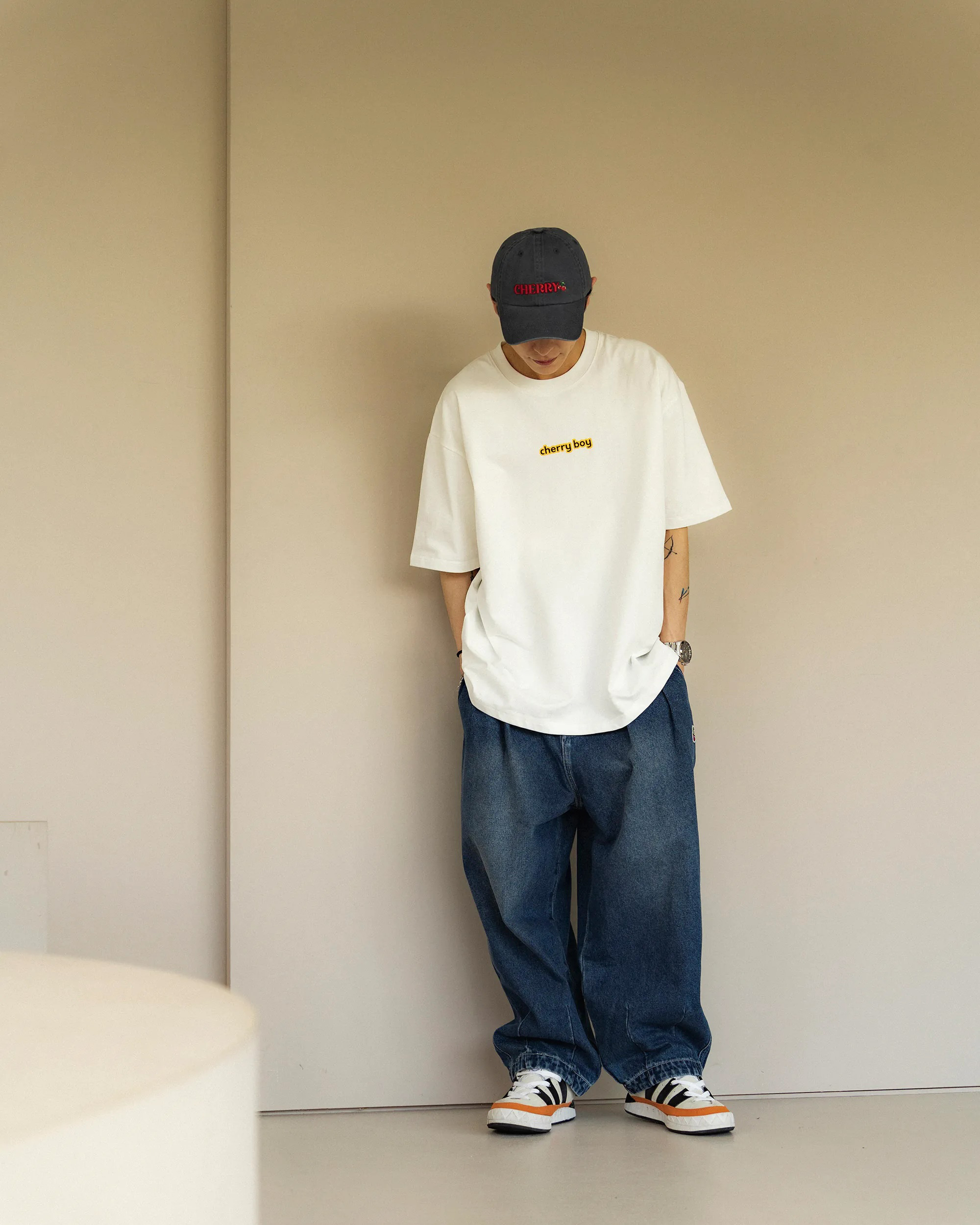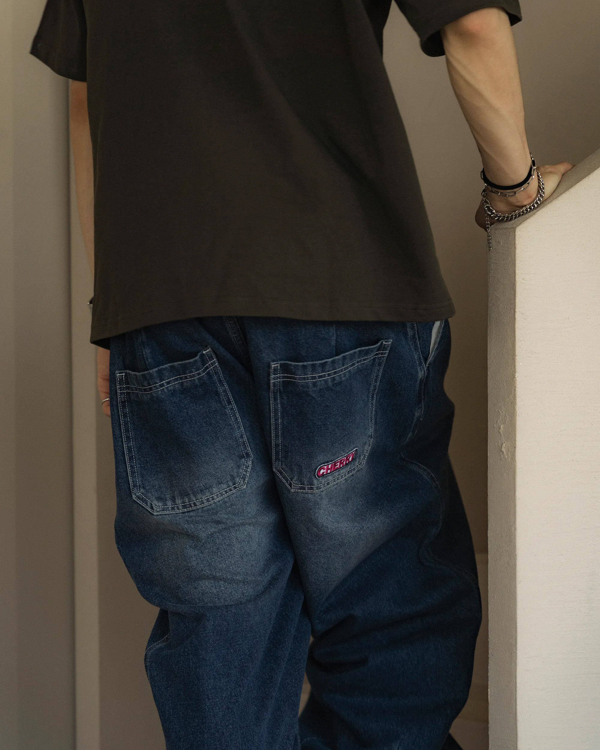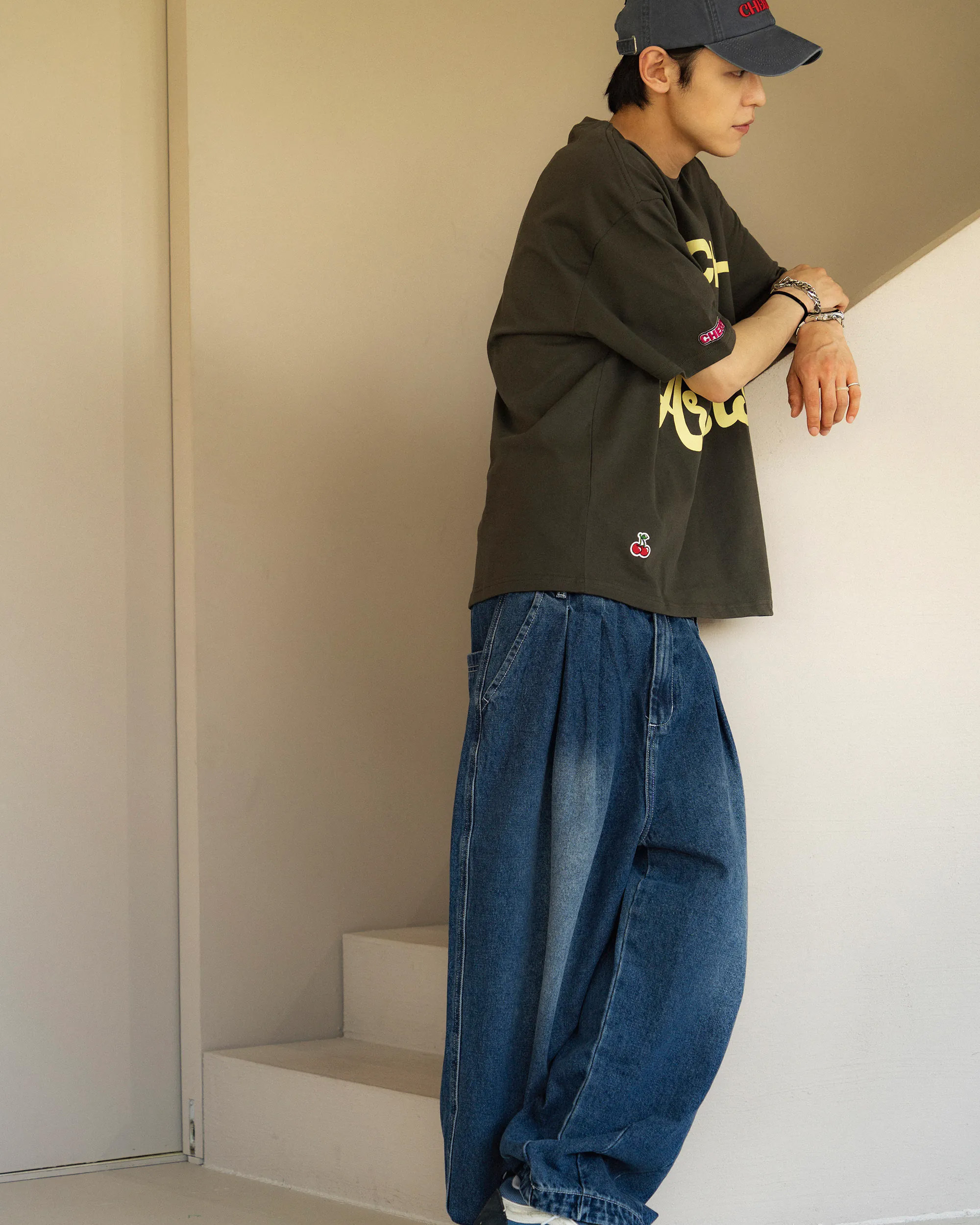 重磅牛仔面料搭配弧形輪廓版型