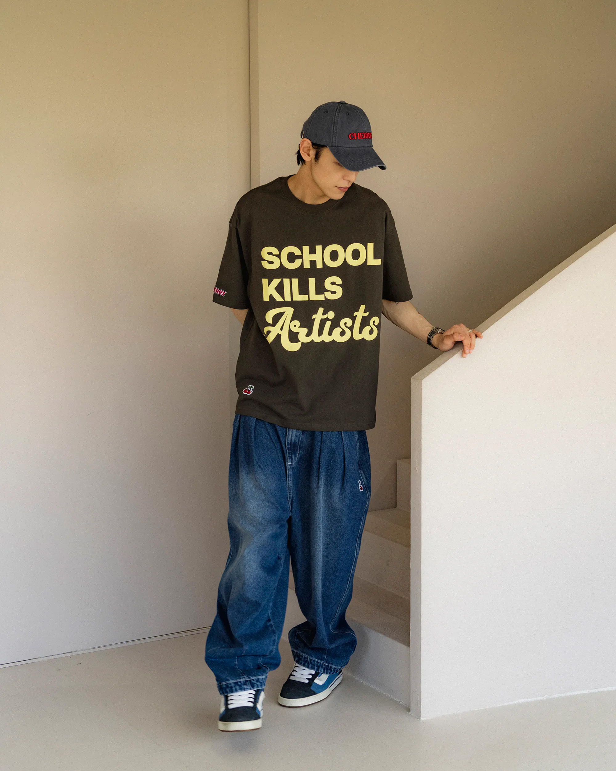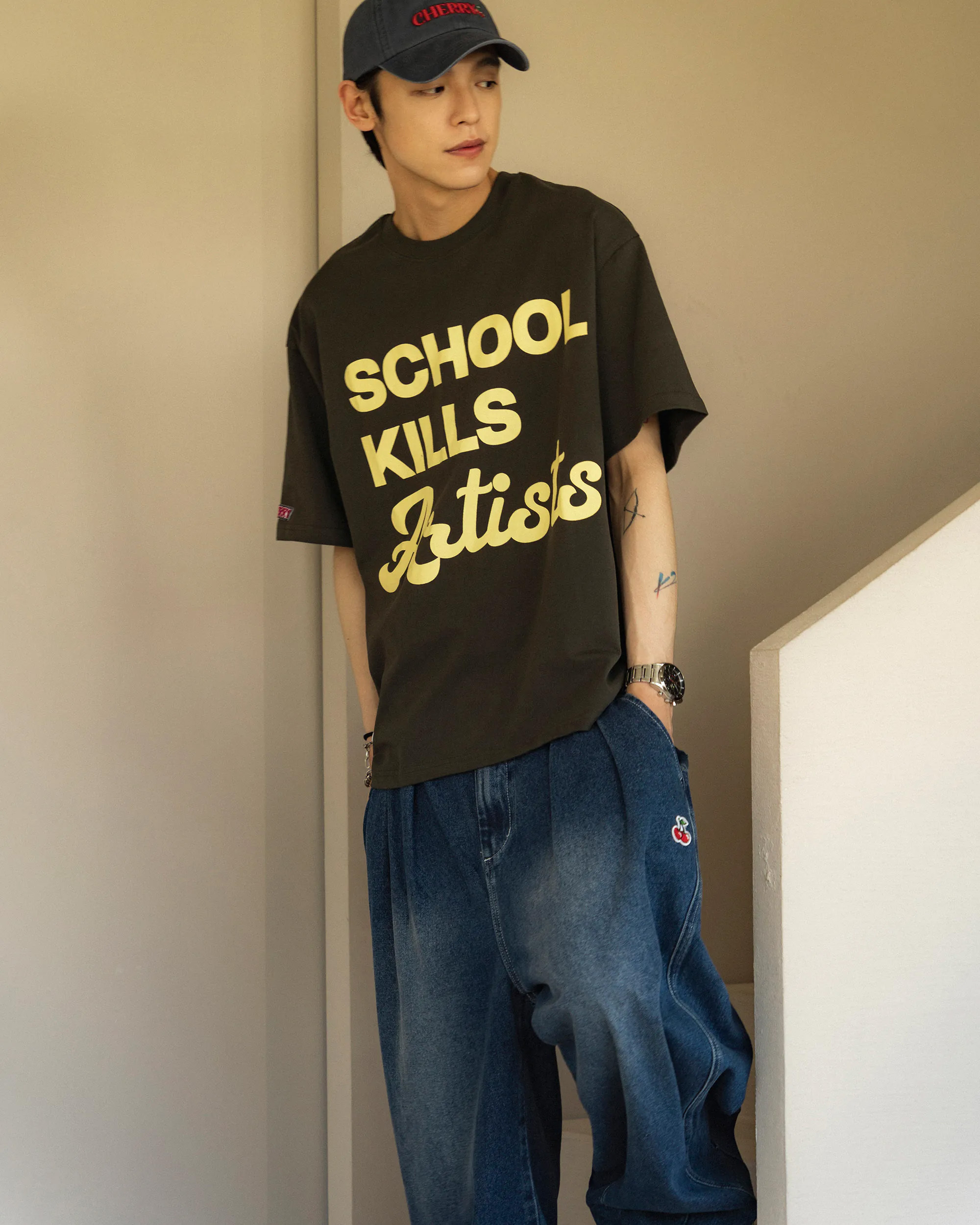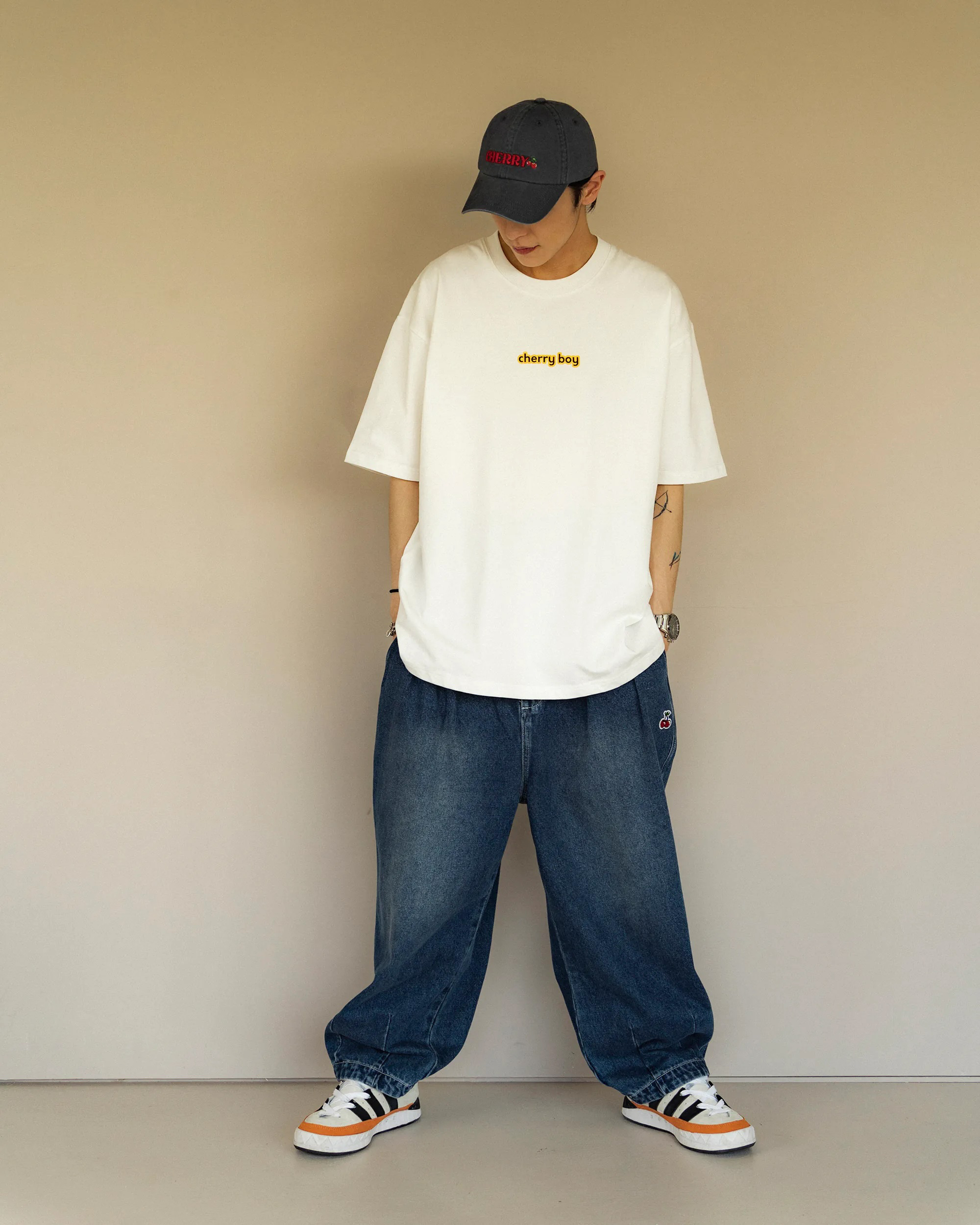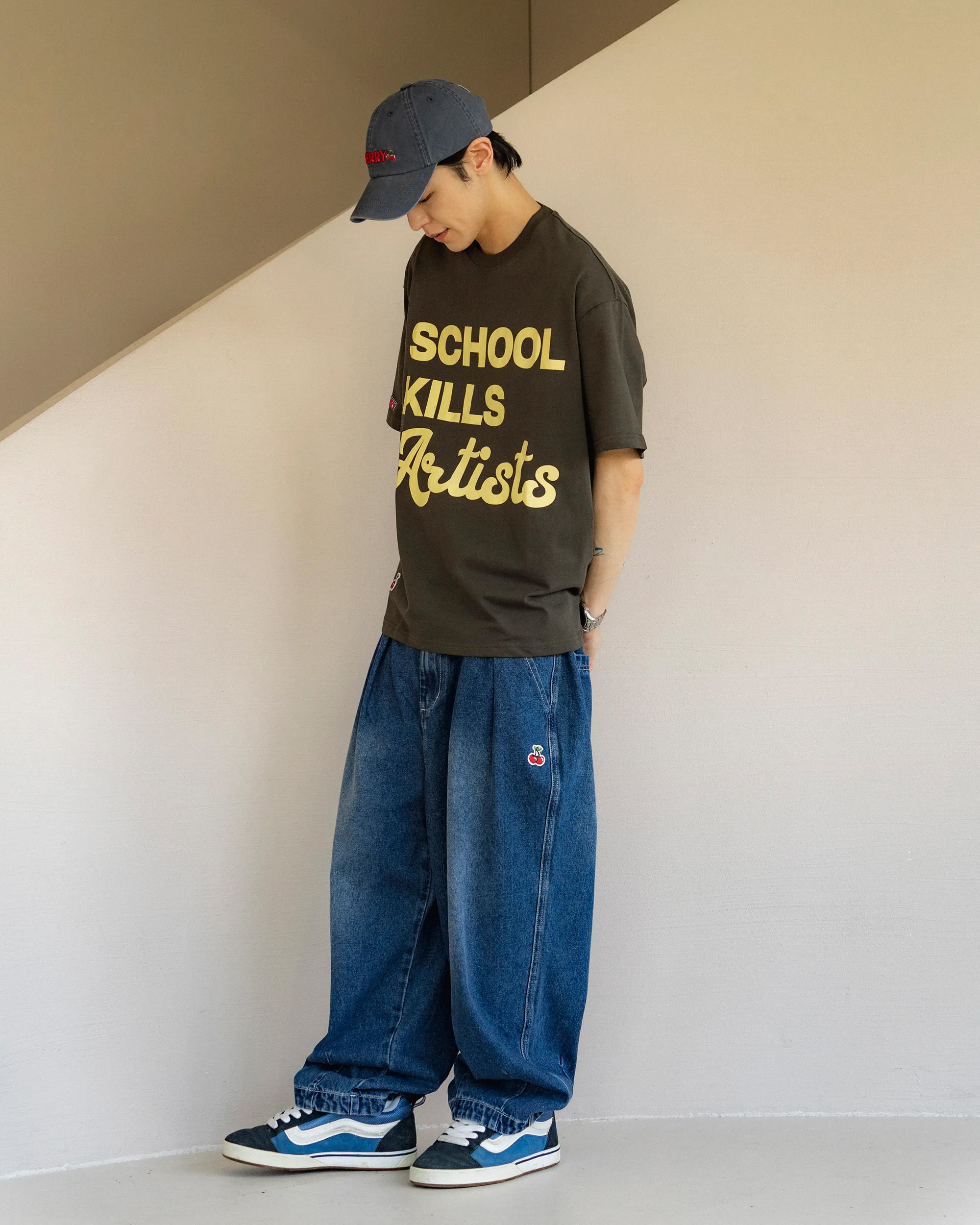 重磅牛仔面料搭配弧形輪廓版型