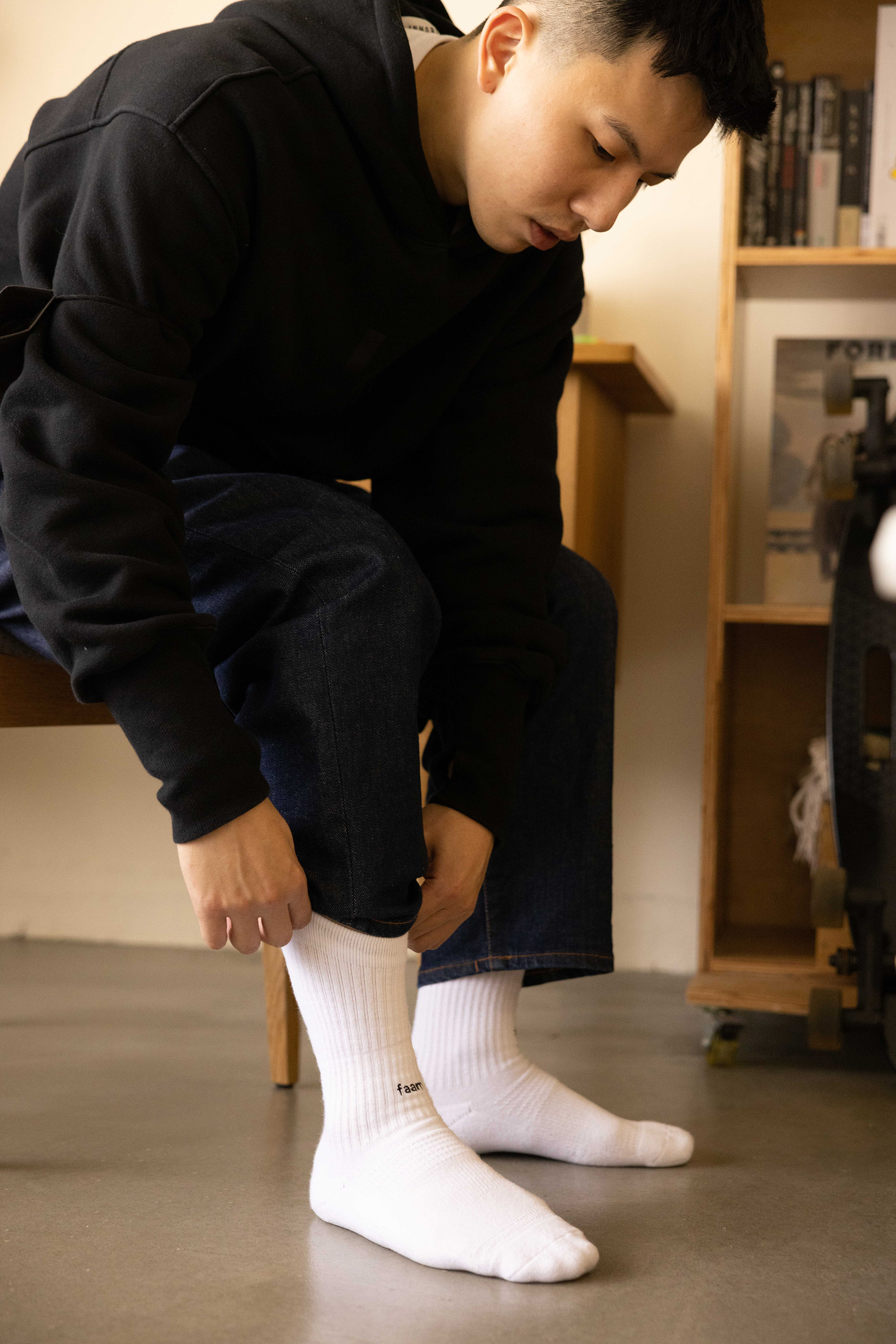faam / ESSENTIAL CREW - 素面單色針織高筒襪 - 柔白、黯黑