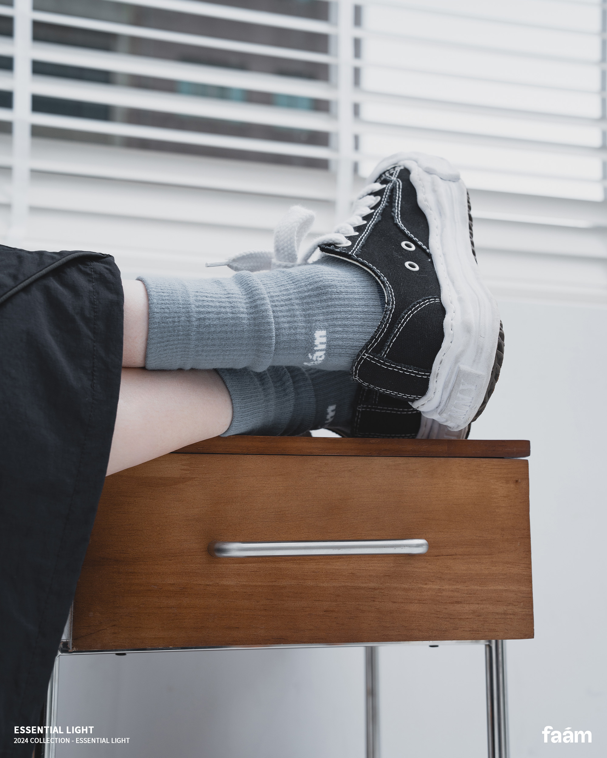 faam / ESSENTIAL LIGHT 輕量素面雙色針織高筒襪 - 象牙灰、煥白、炭黑、冰灰、幽灰、米杏、灰藍