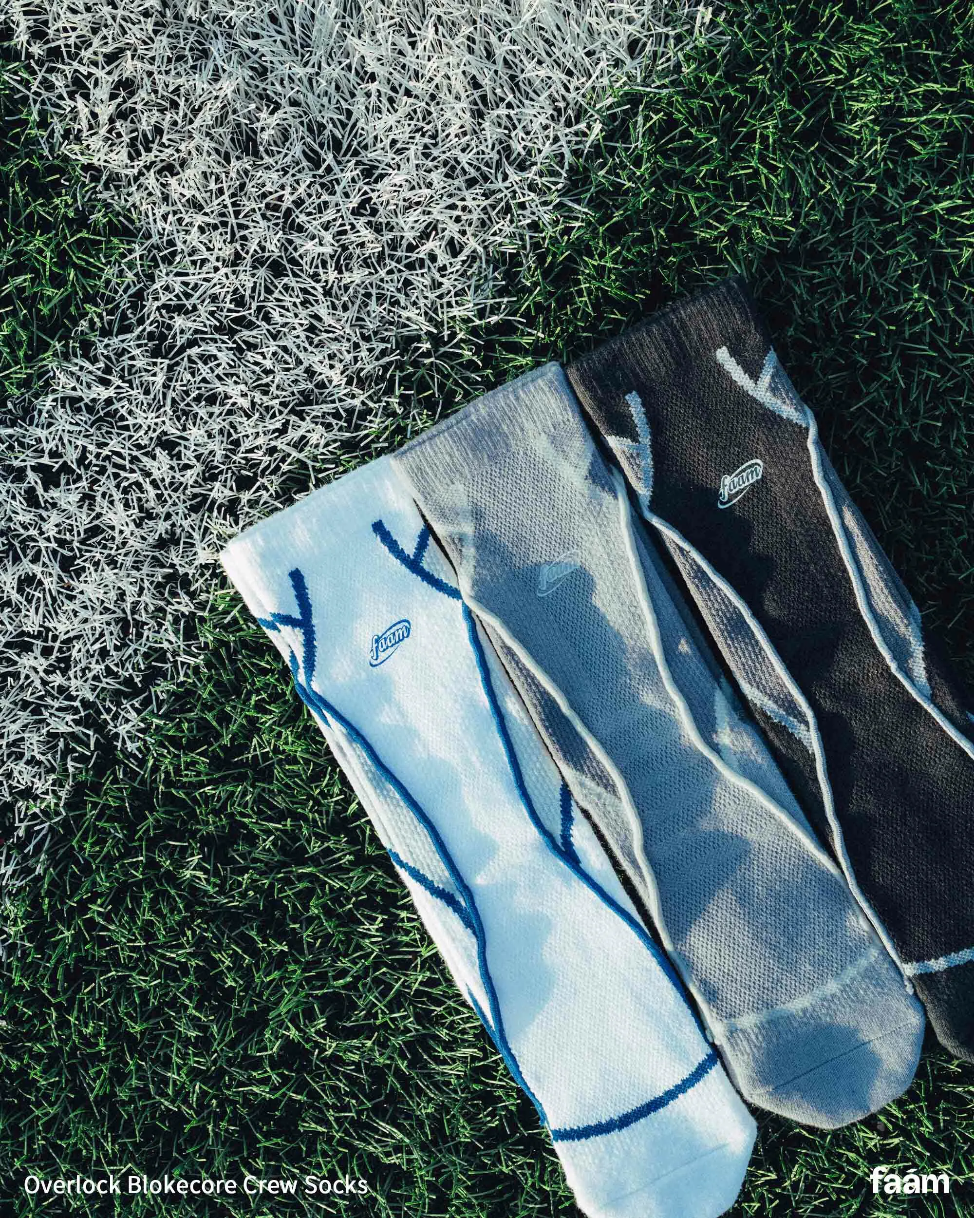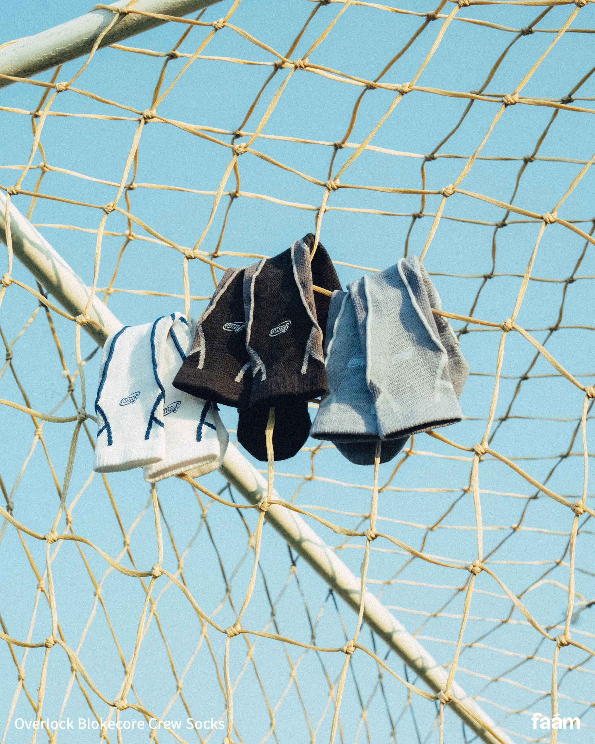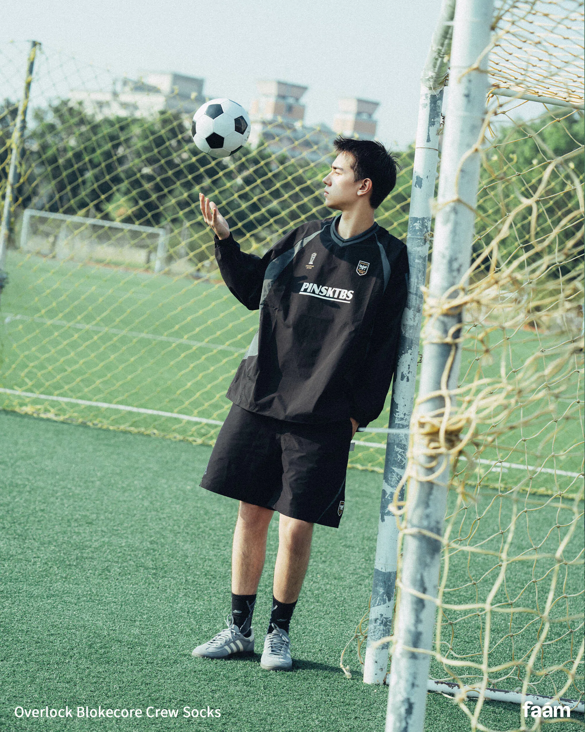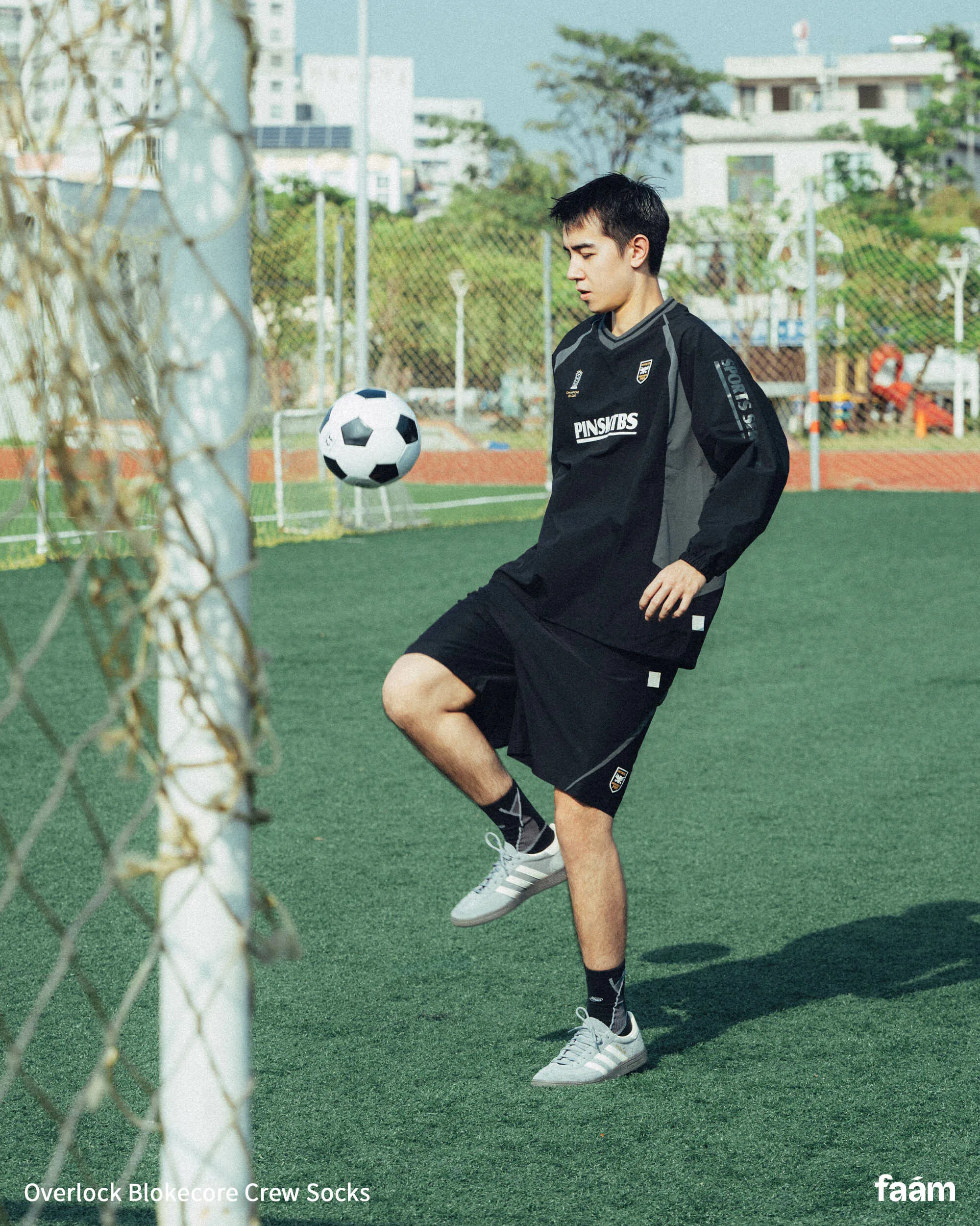 以 80s~90s 球賽文化及球衣風格為靈感,擷取近年來的球衣元素及輪廓,延伸出 Blokecore 風格的襪款。襪身線條