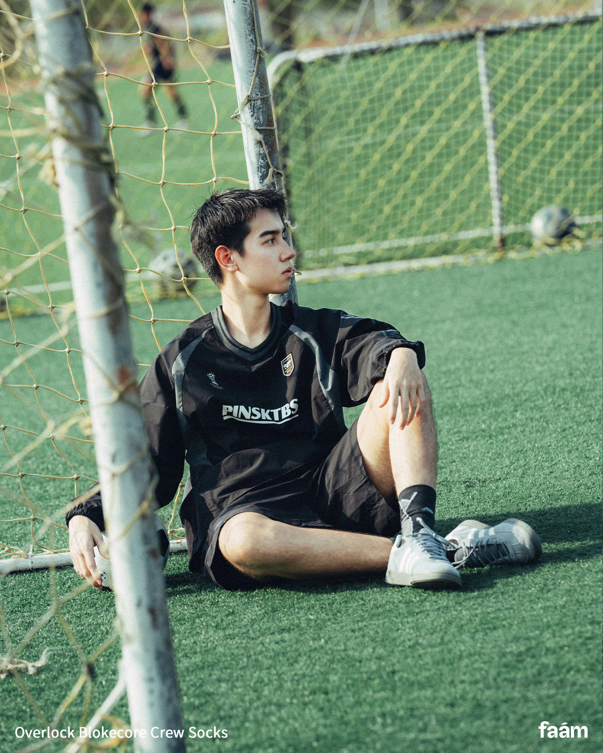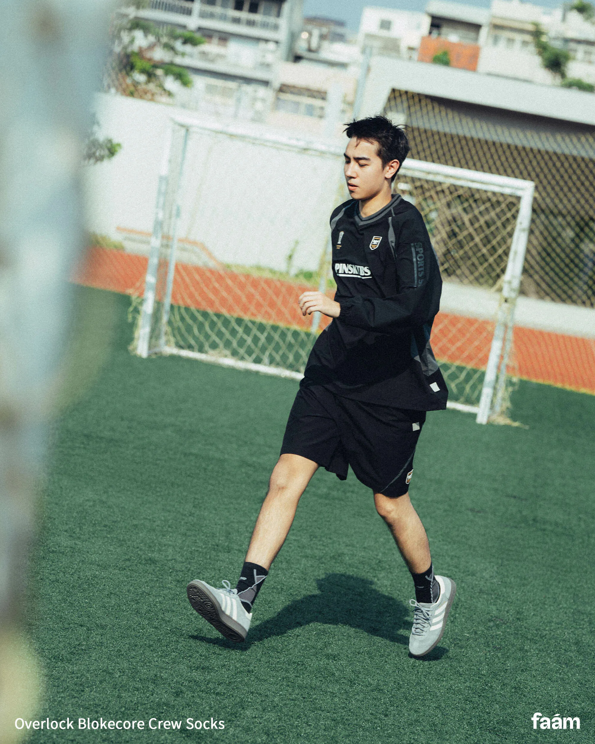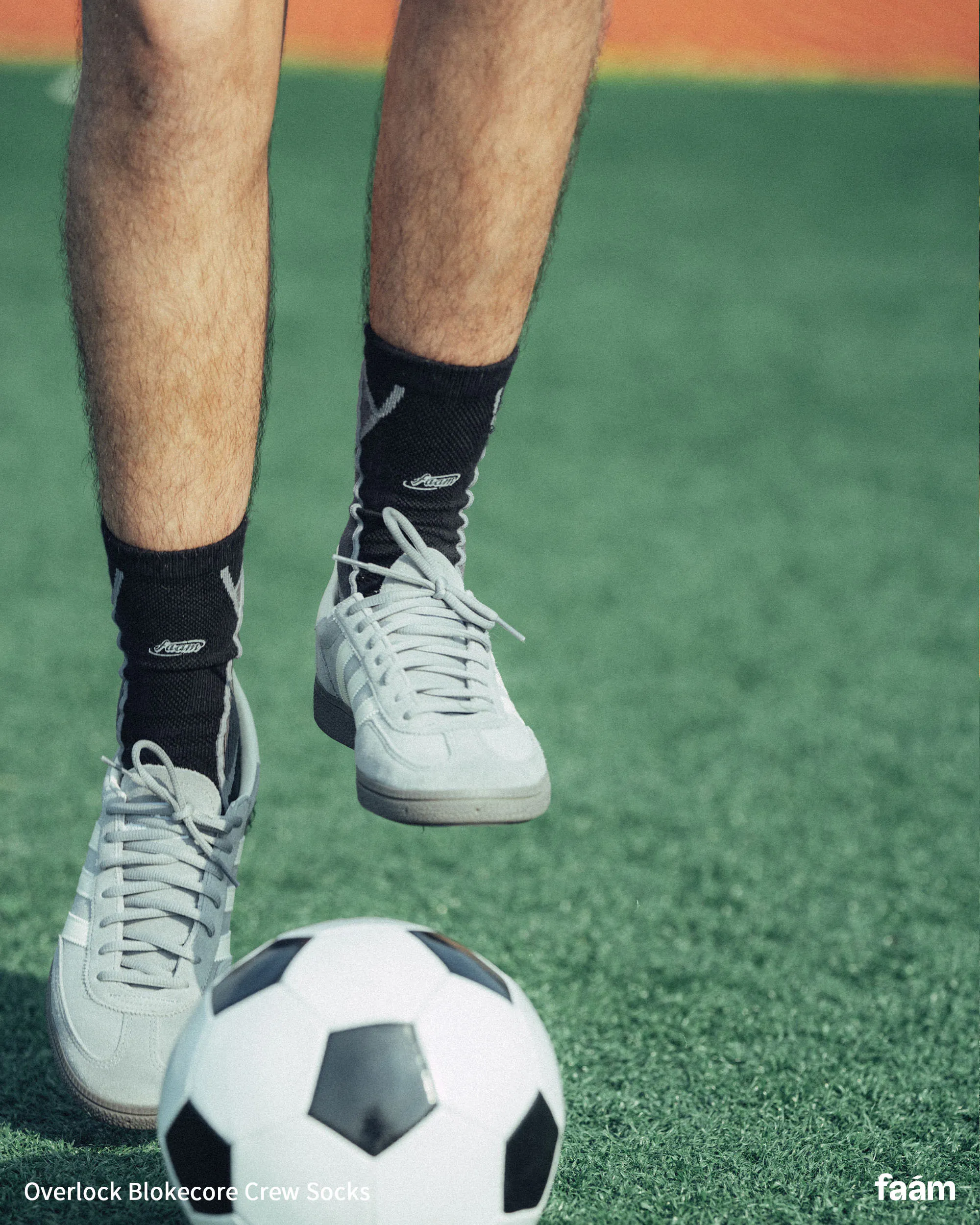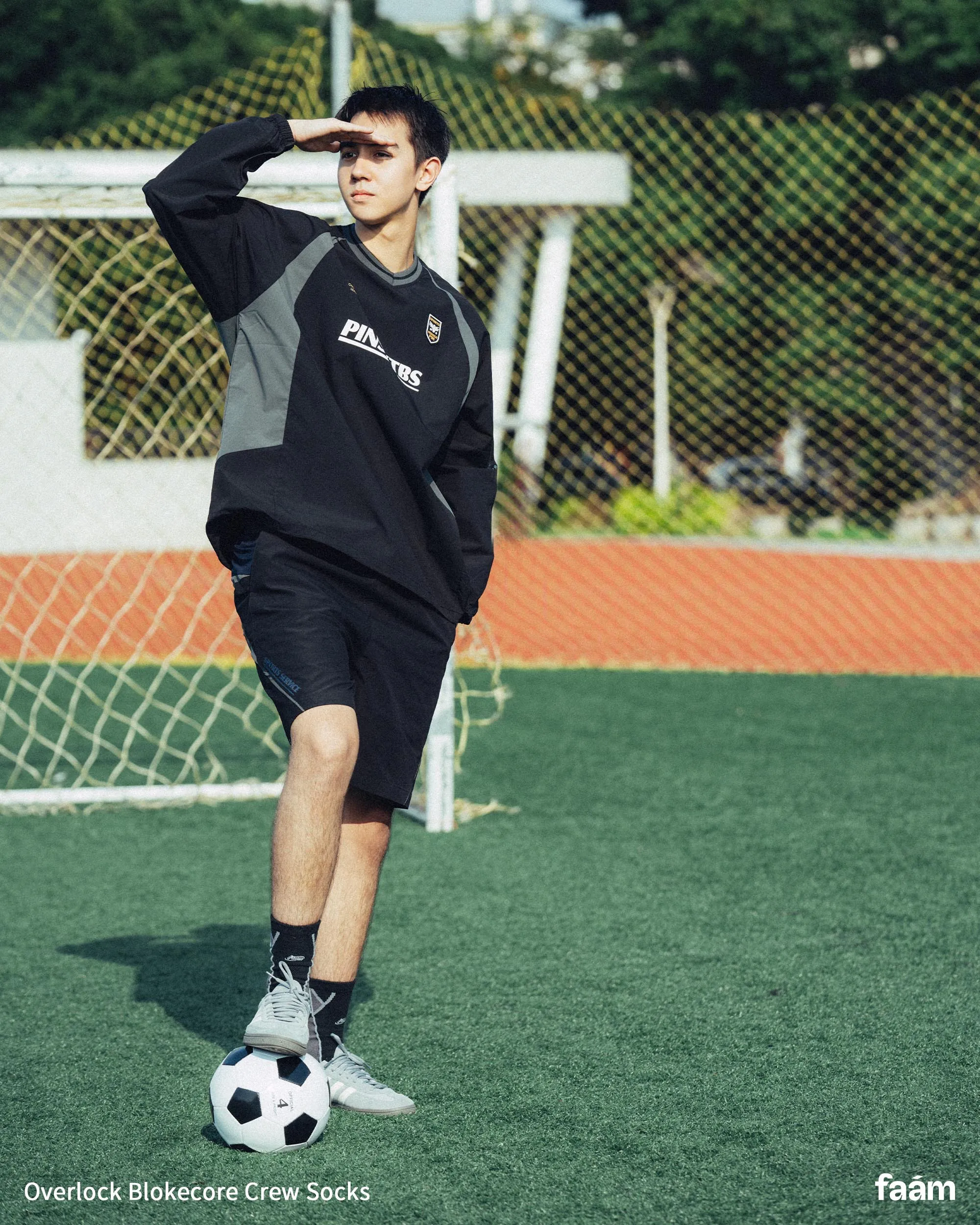 以 80s~90s 球賽文化及球衣風格為靈感,擷取近年來的球衣元素及輪廓,延伸出 Blokecore 風格的襪款。襪身線條