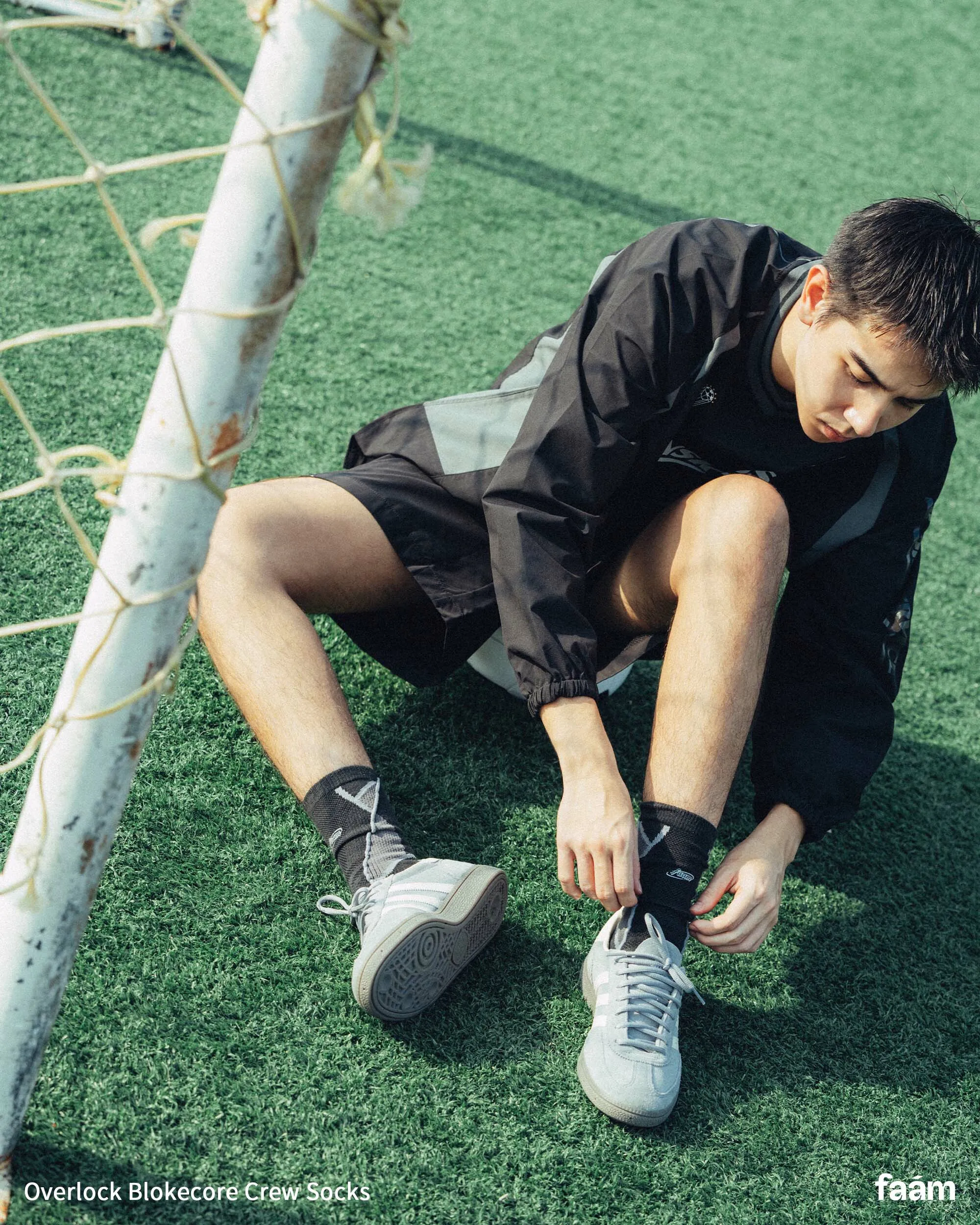 faam / Overlock Blokecore Crew socks - 拷克球衣針織高筒襪 - 黑