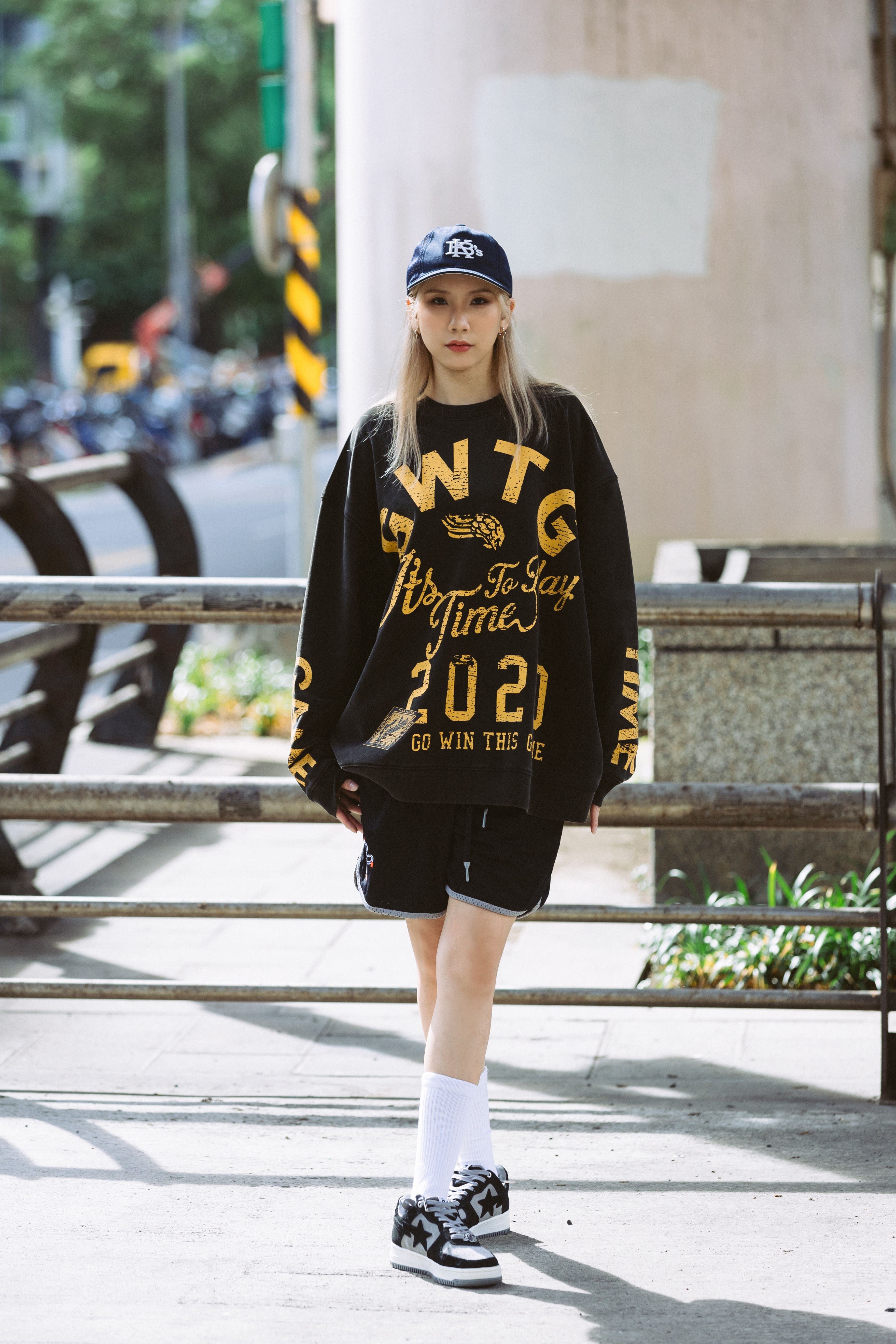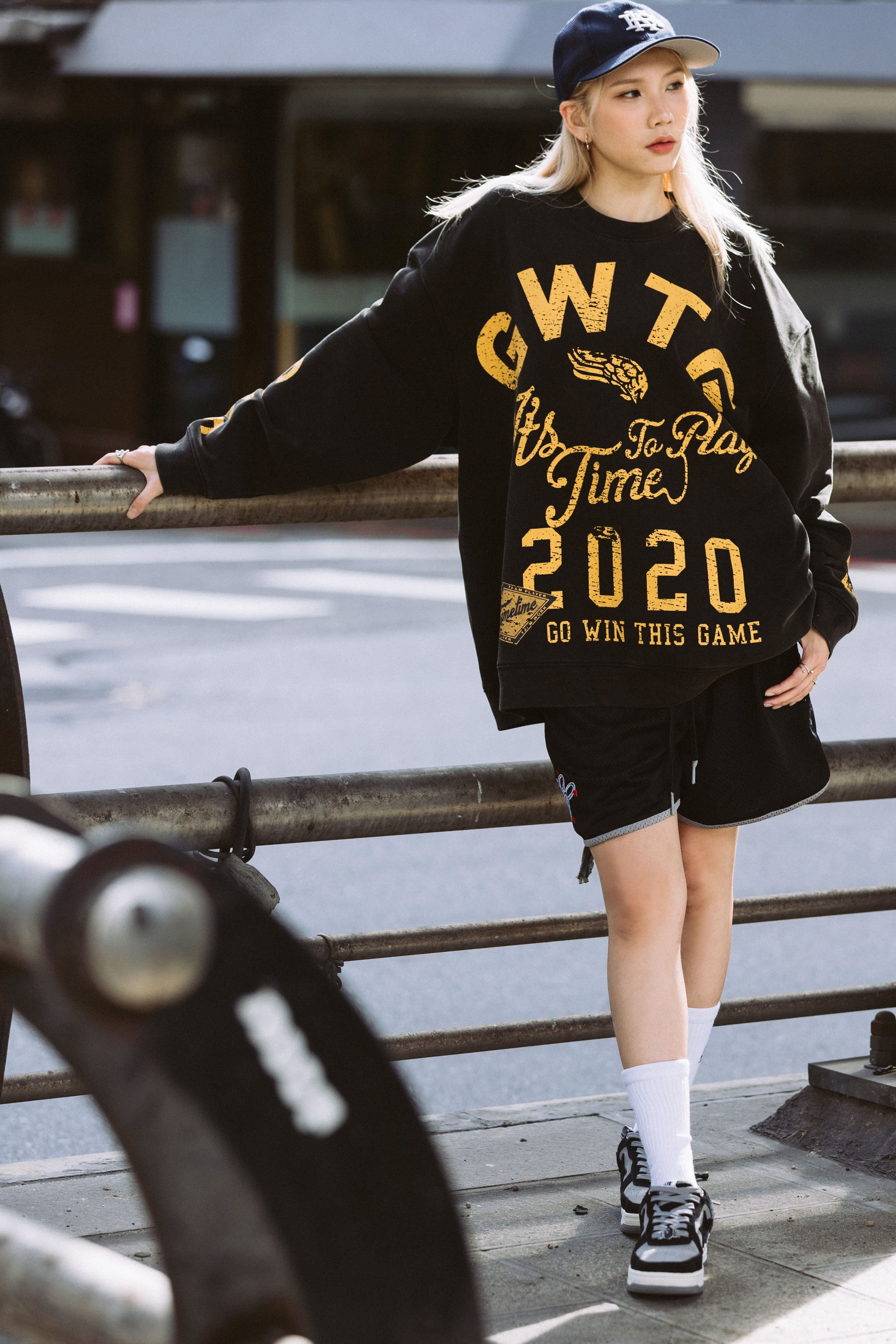這款大學T以標語排版為設計核心,將GAMETIME經典口號「It’s Time To Play」與「Go Win This Game」融合,結合徽章、翅膀及年份的多元排版元素,以不同字體呈現層次豐富的視覺效果。透過特殊的破壞印刷工藝,打造出如掉漆般的斑駁質感,增添濃厚復古氛圍。