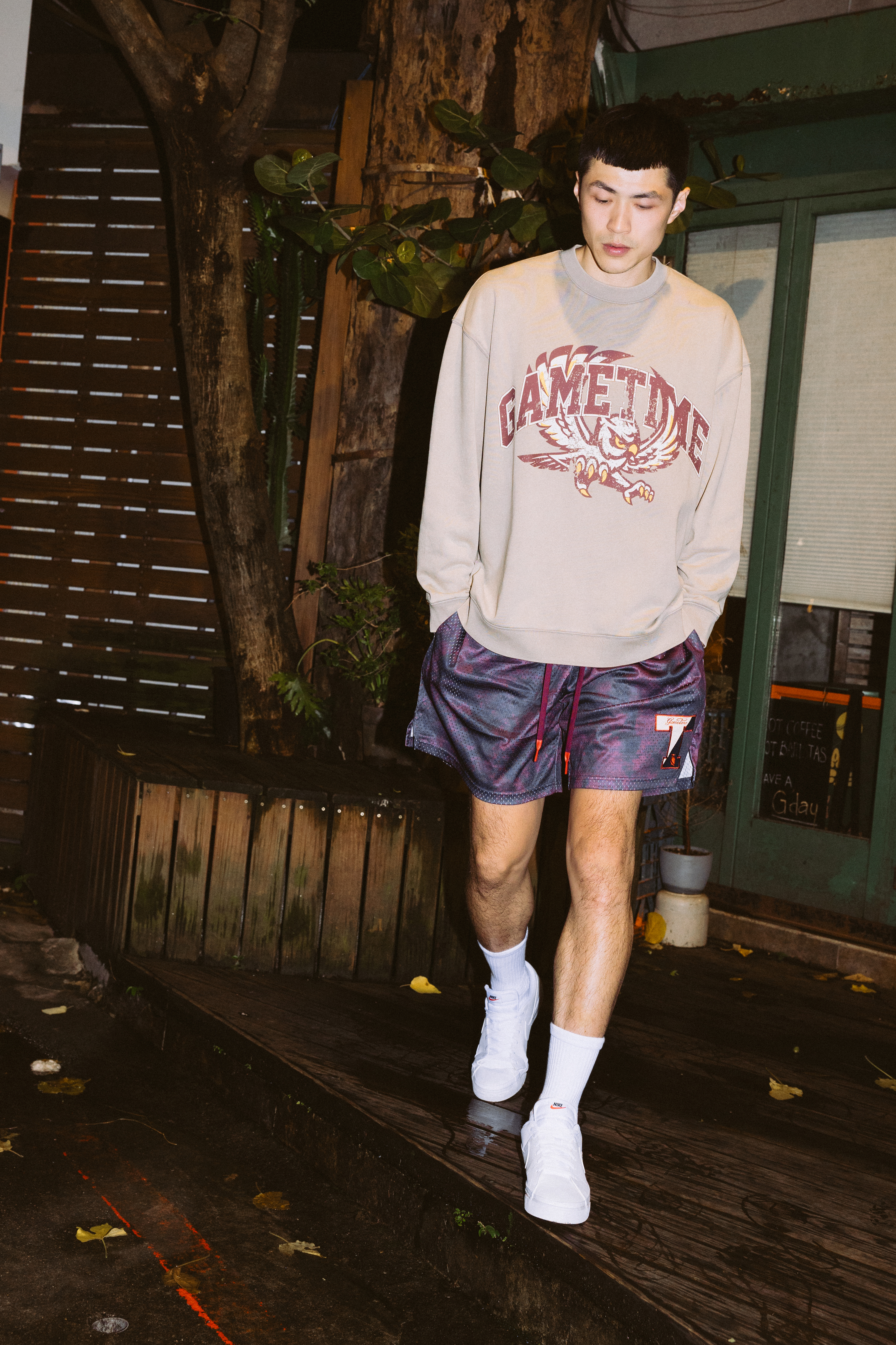 本次推出的大學Tee靈感來自古著風格中經典的美式校園球隊服飾設計,採用學院文字與吉祥物排版,呈現濃厚的學院氣息。設計上將GAMETIME拱形學院字體與美式貓頭鷹插圖結合,搭配特殊的破壞印刷工藝及整體洗水做舊處理,營造出獨特且充滿年代感的復古氛圍。