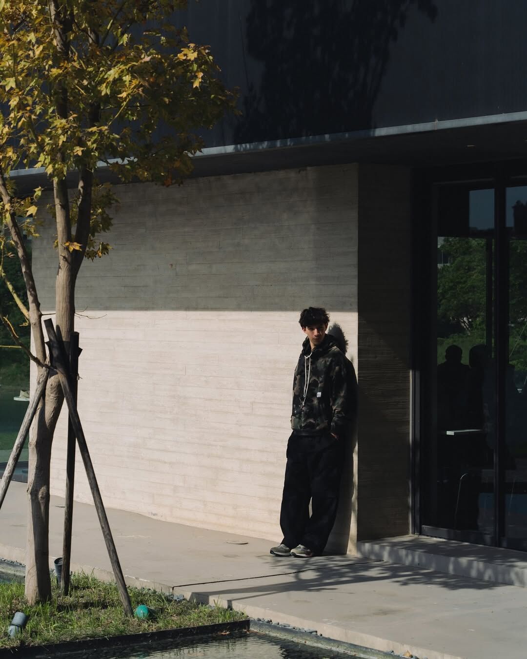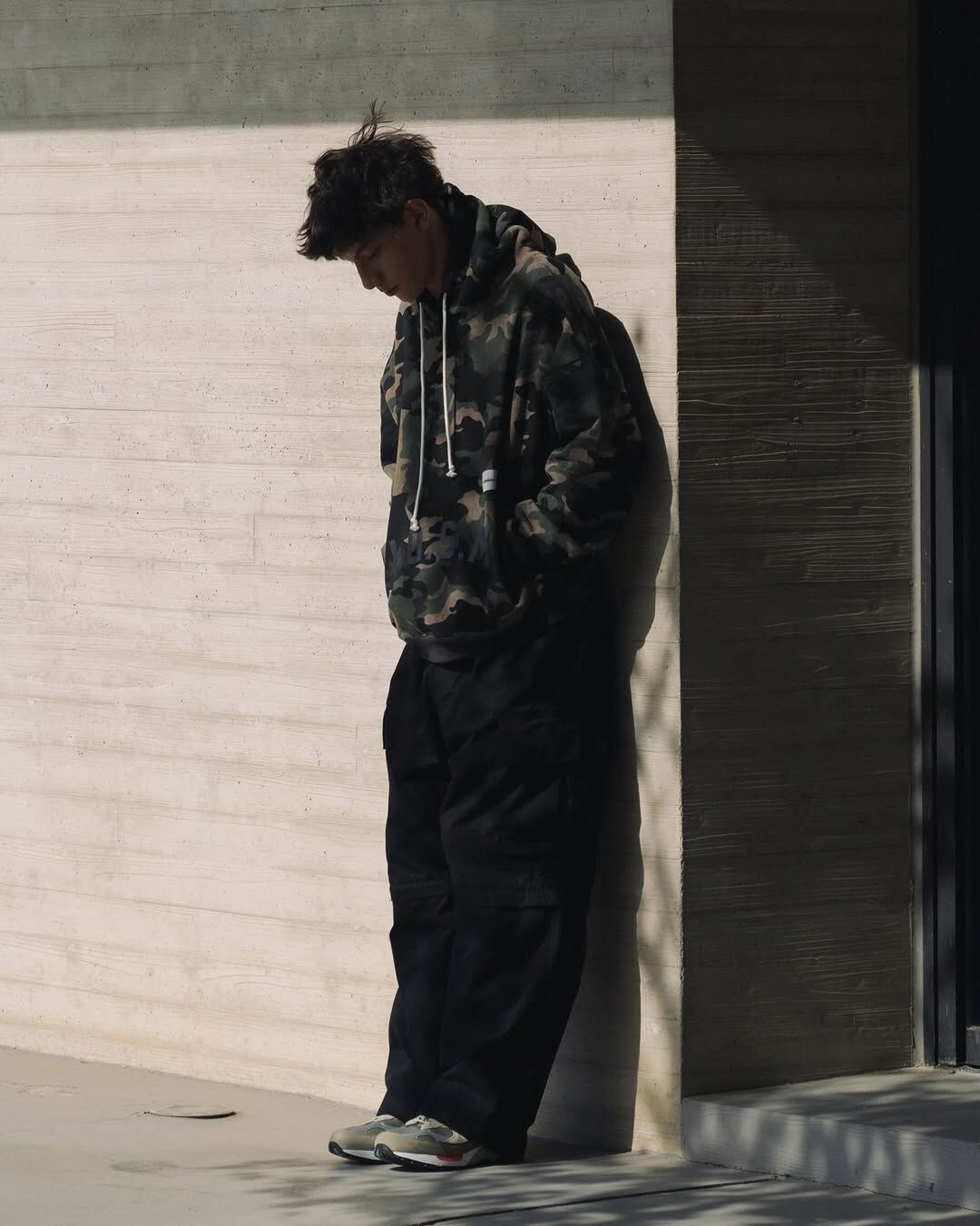 以城市遊牧為靈感,融合軍事硬派視覺與休閒留白節奏,結合現代輪廓與復古韻味,呈現隨性不羈的個性風格。迷彩與花灰兩種經典視覺以低飽和色調展現沉著質感。寬短版設定提升視覺重心,打造均衡穿搭比例。棉質面料舒適耐穿,適合日常街頭與層次造型。