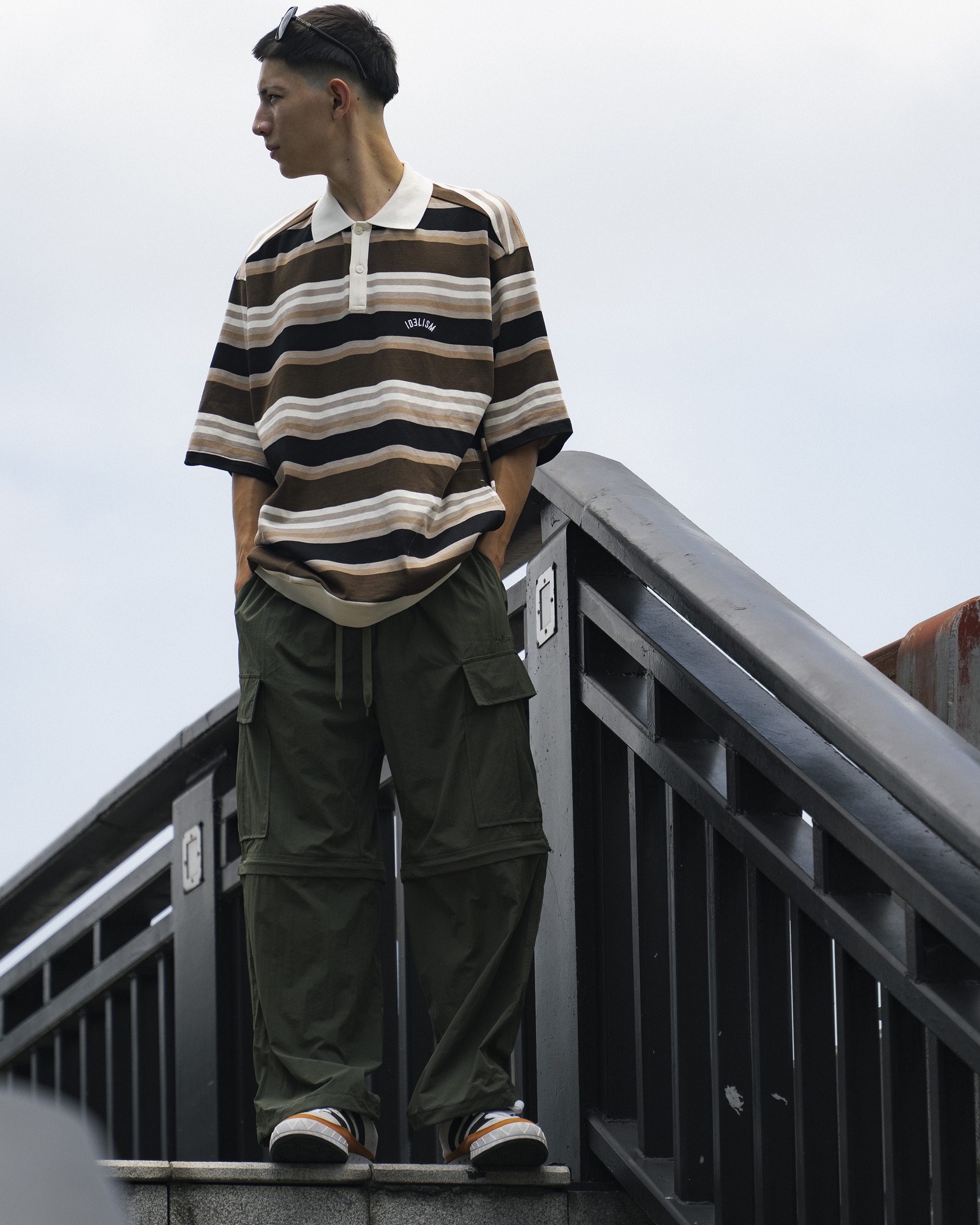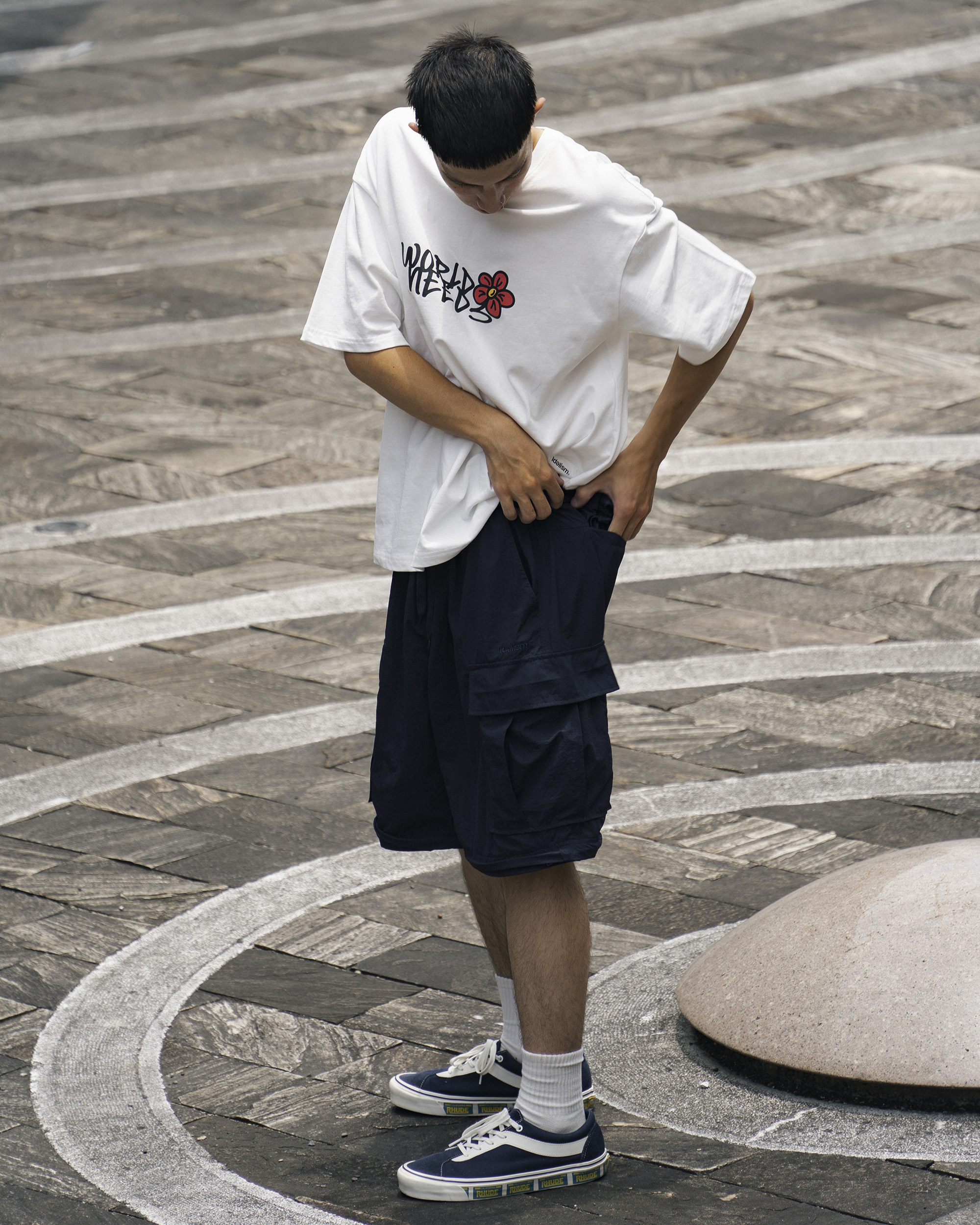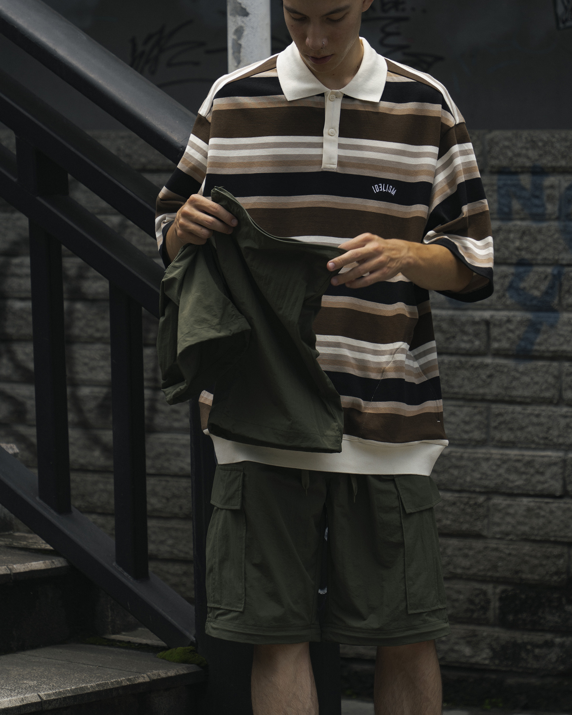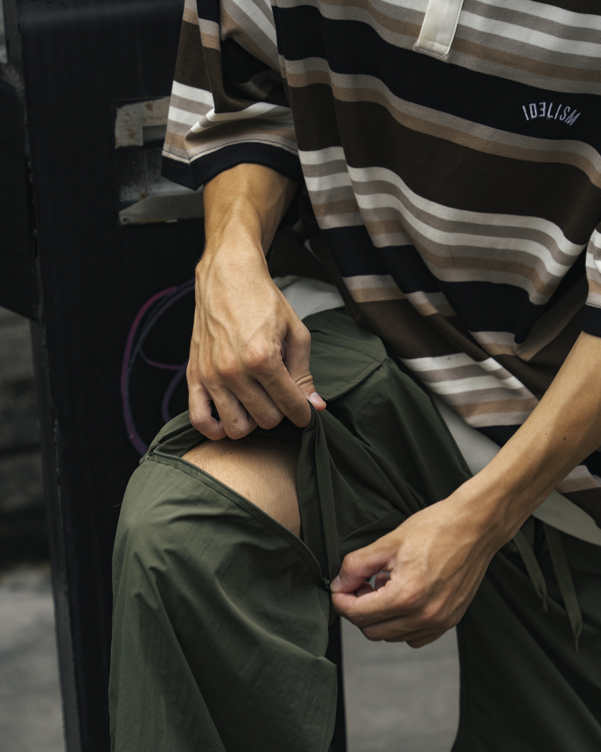 實現服裝的多元需求,展現著因地制宜的運用,基礎Cargo設定配合皺感薄尼龍布製作,不僅有著極輕的穿著體驗也有著實用的收納表現,做為無季節性褲裝可為生活帶來更加從容的選擇。