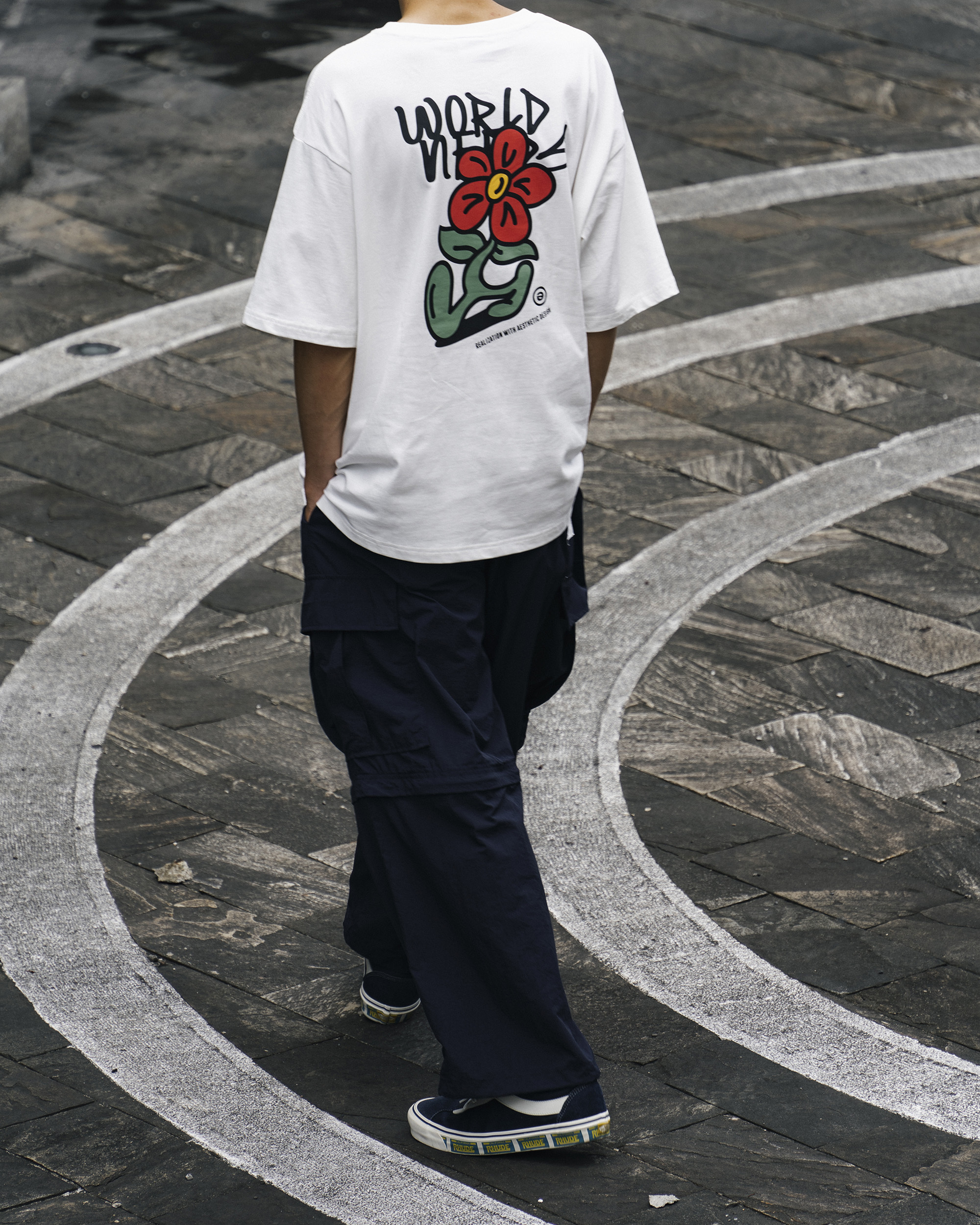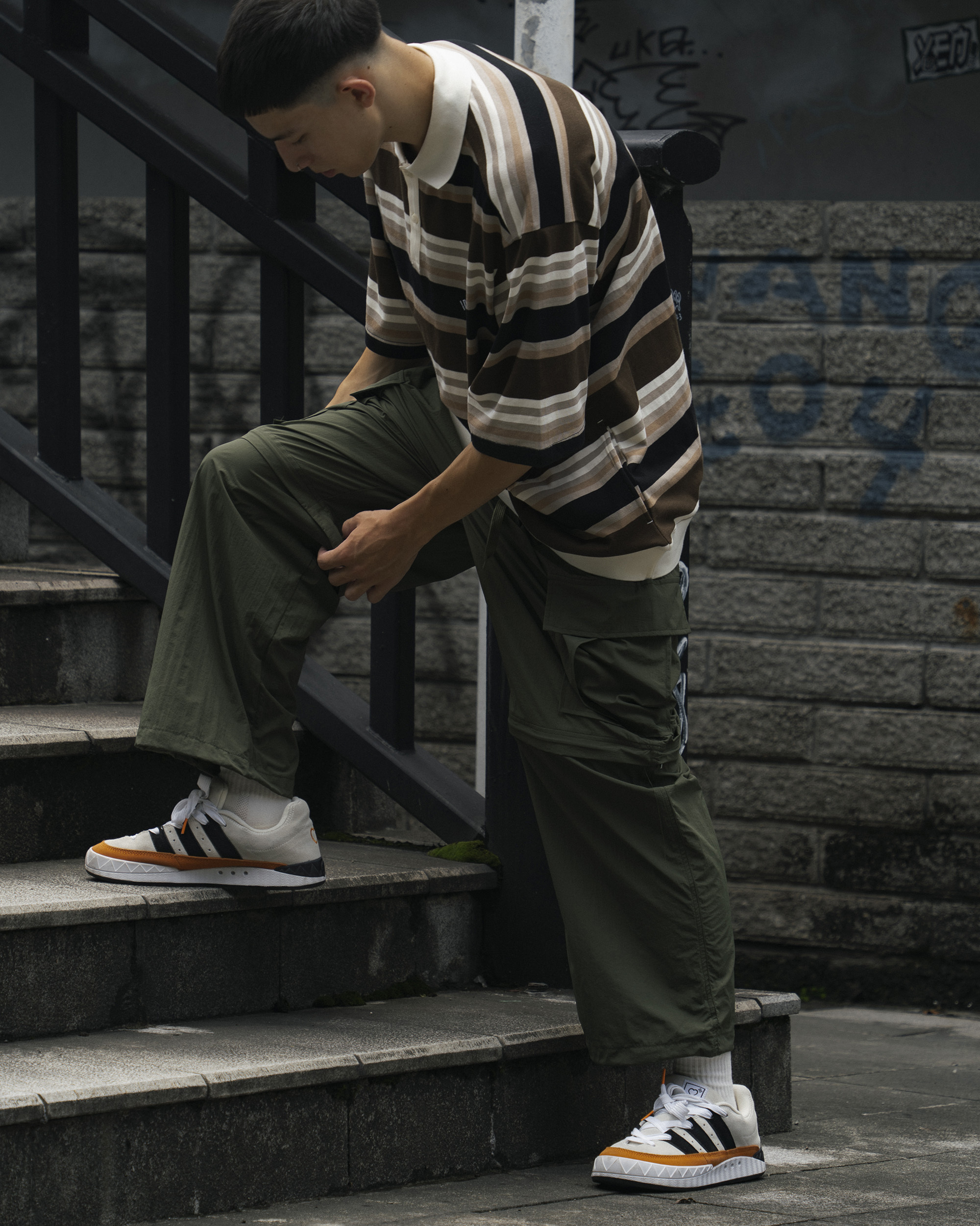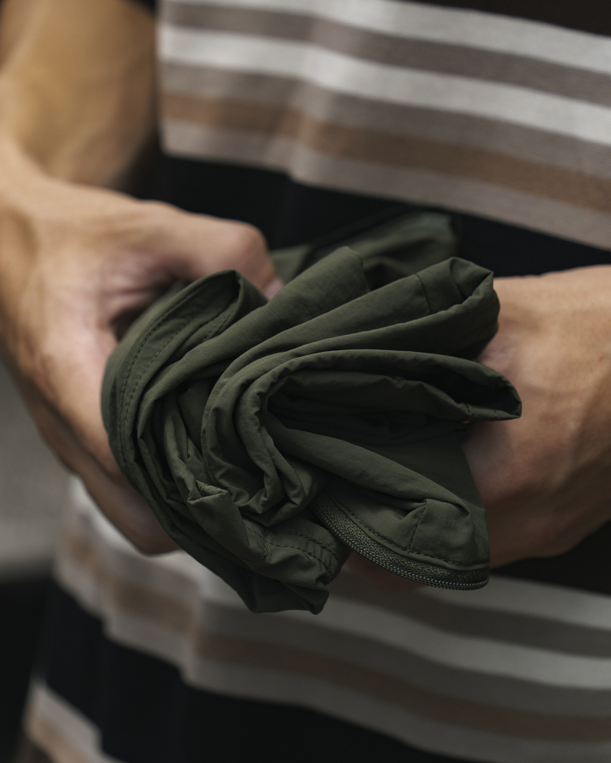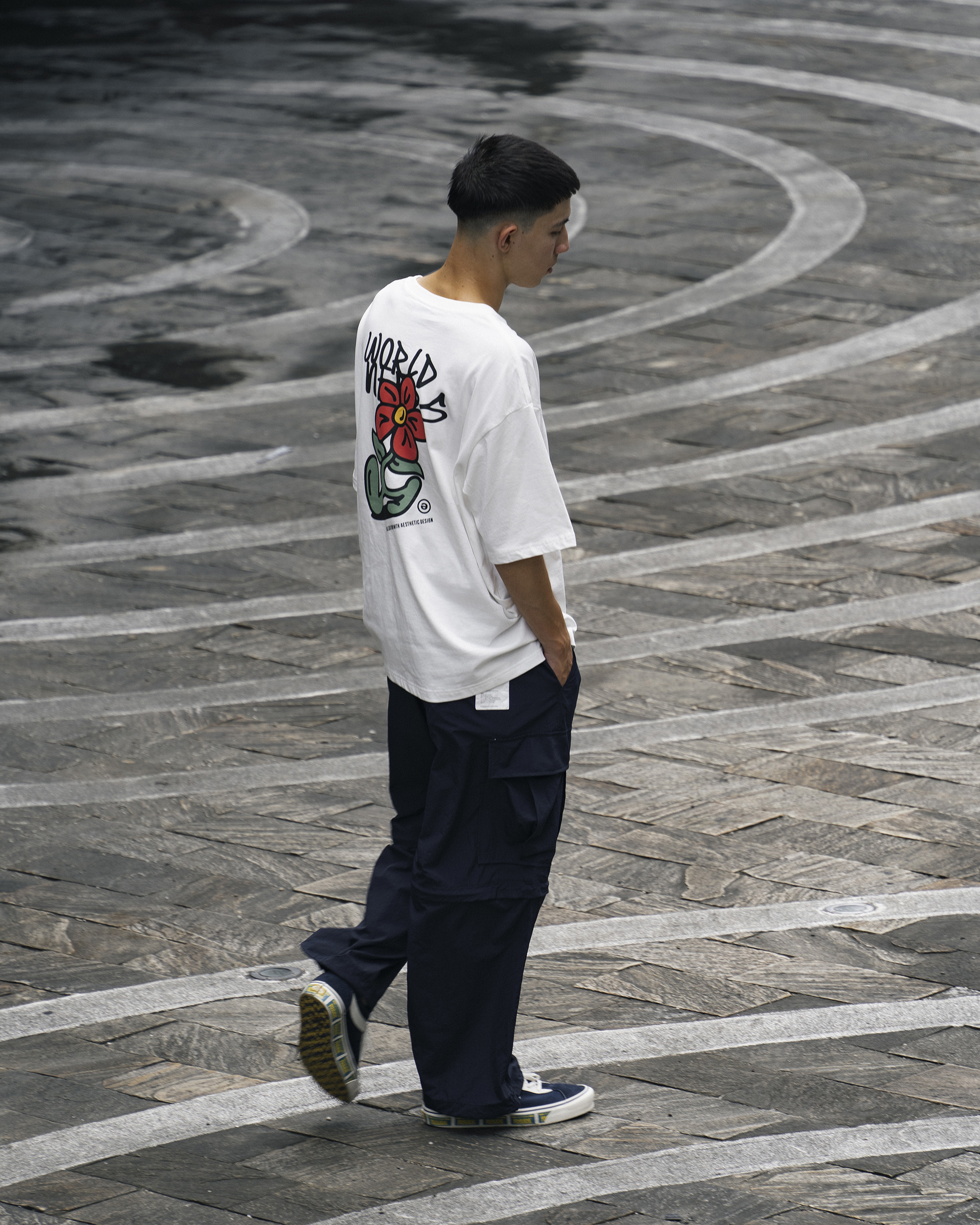 實現服裝的多元需求,展現著因地制宜的運用,基礎Cargo設定配合皺感薄尼龍布製作,不僅有著極輕的穿著體驗也有著實用的收納表現,做為無季節性褲裝可為生活帶來更加從容的選擇。