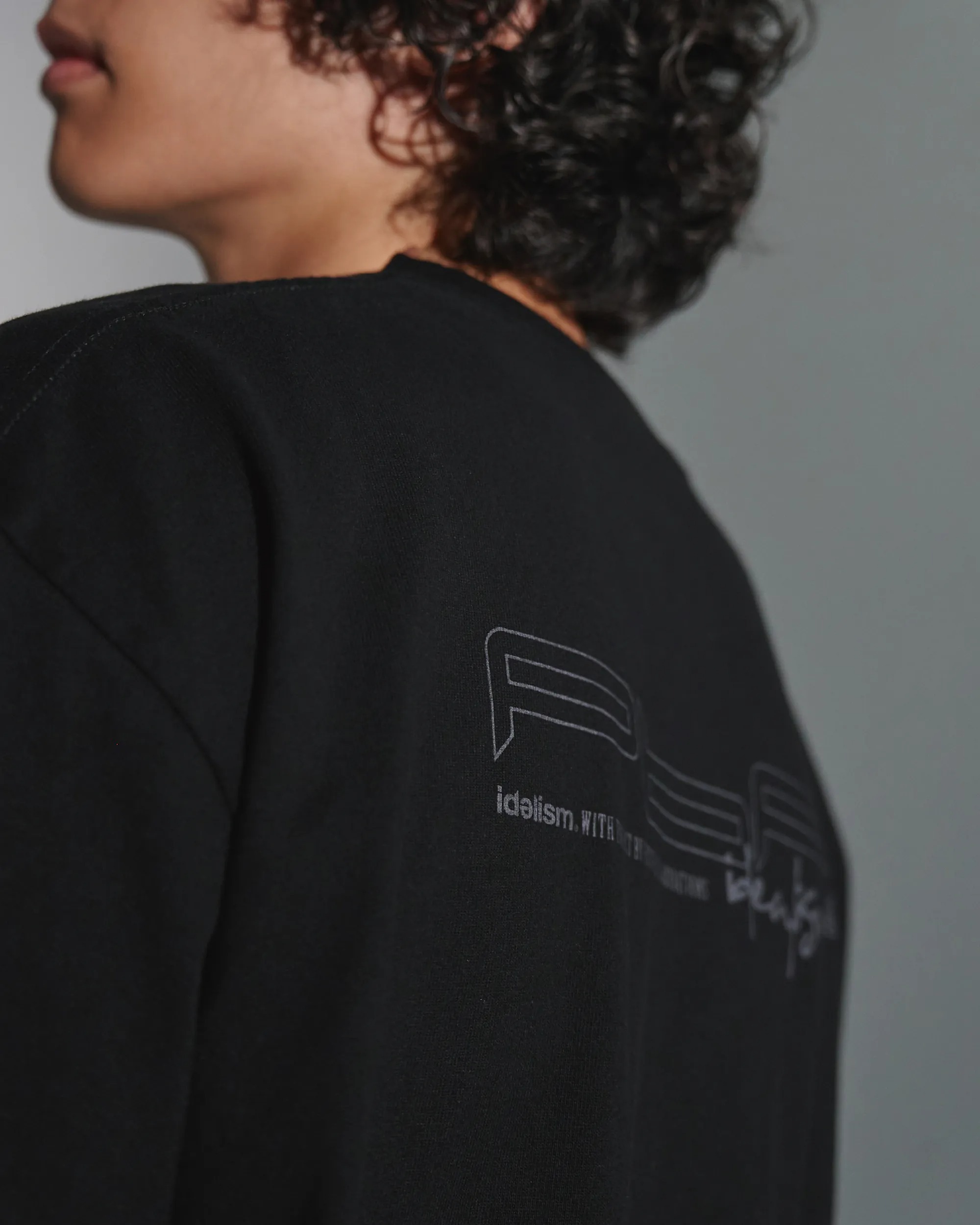 疊搭均合適之厚磅棉料胸口與背部印上本次聯名LOGO點綴並在羅紋採做舊刷破處理,