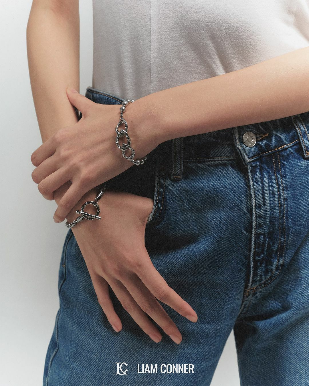 流線古巴鍊環結合珍珠與銀珠交錯設計,簡約不失個性