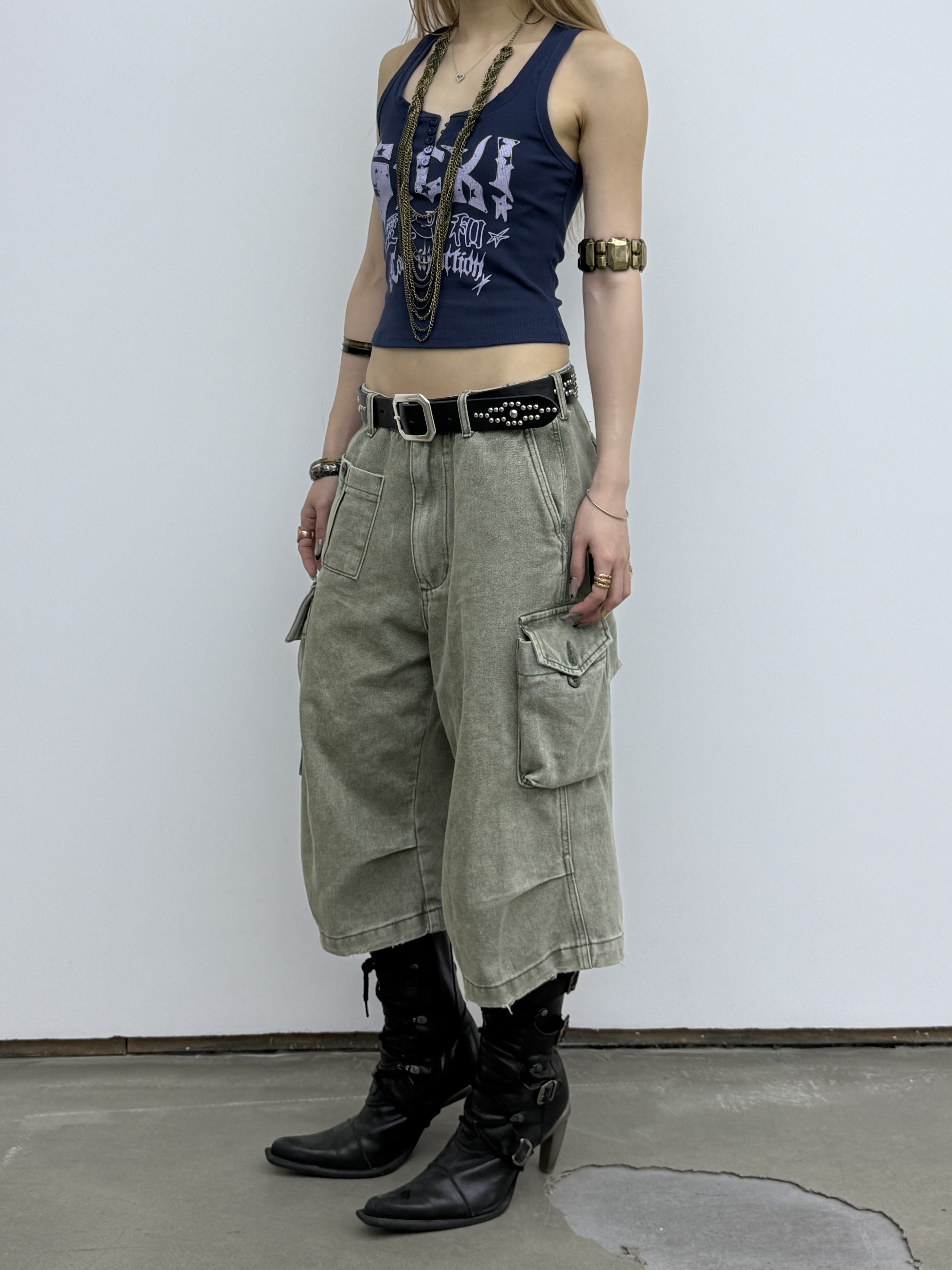 商品名稱|Saved by life swing collar tank – 愛與和平撞色印刷工字開扣背心