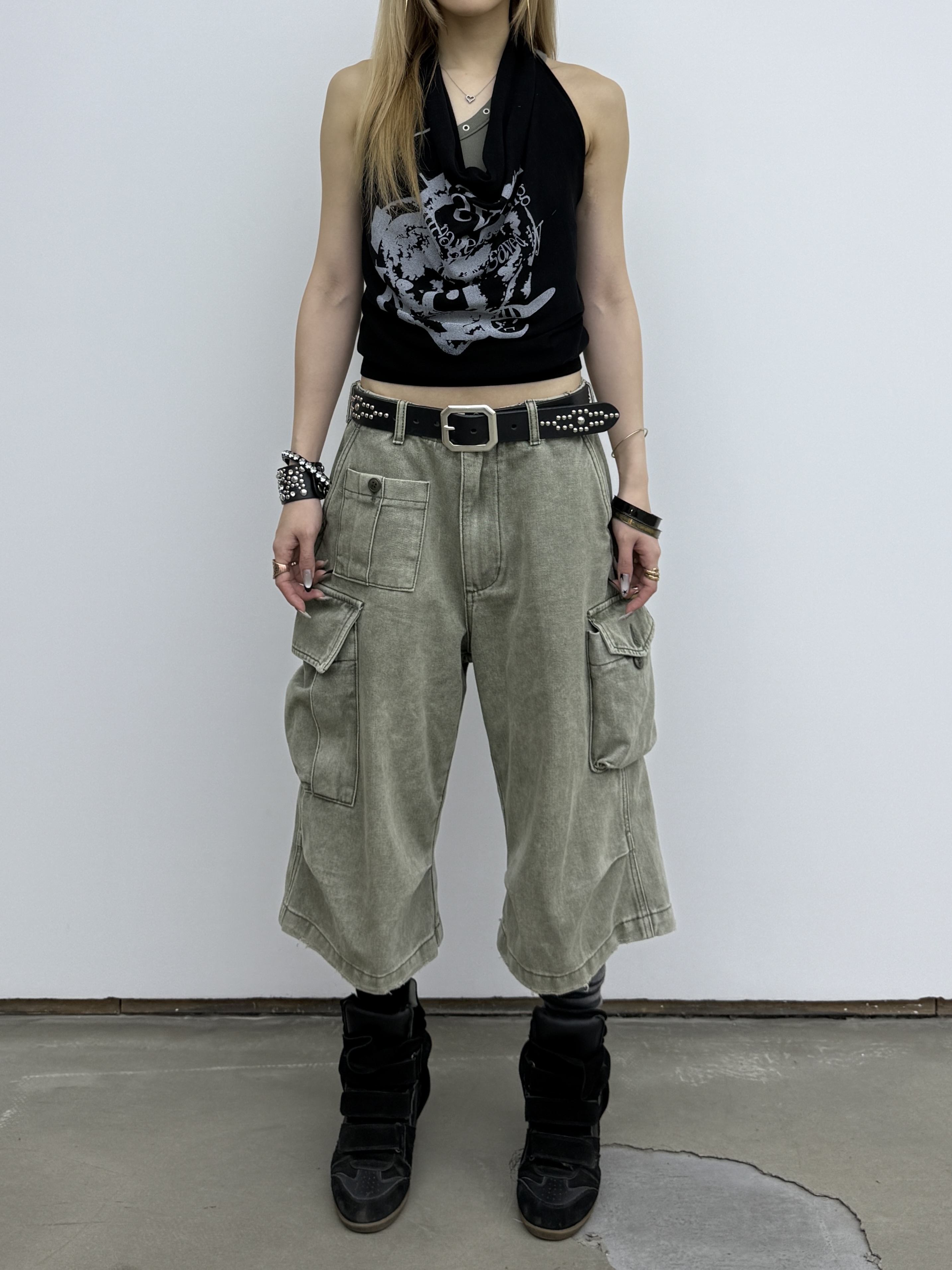 破碎心鎖印花象徵愛、自由與傷害的矛盾交織,高彈性羅紋棉搭配下擺微收設計,勾勒俐落身形線條。背後麻花繩交叉綁帶設計露出肩線與背部曲線,在街頭與性感之間,劃出屬於自己的態度邊界。