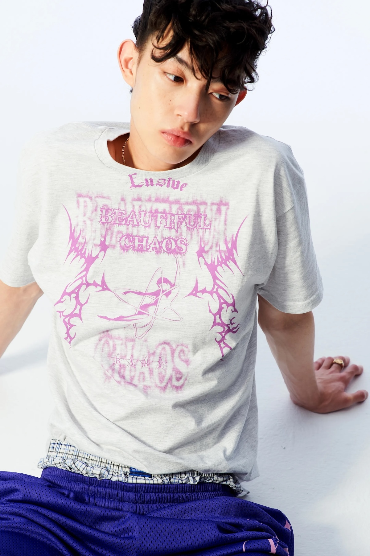 採用軟粗適中的純棉材質,前背印有“BEAUTIFUL CHAOS” 圖名語。