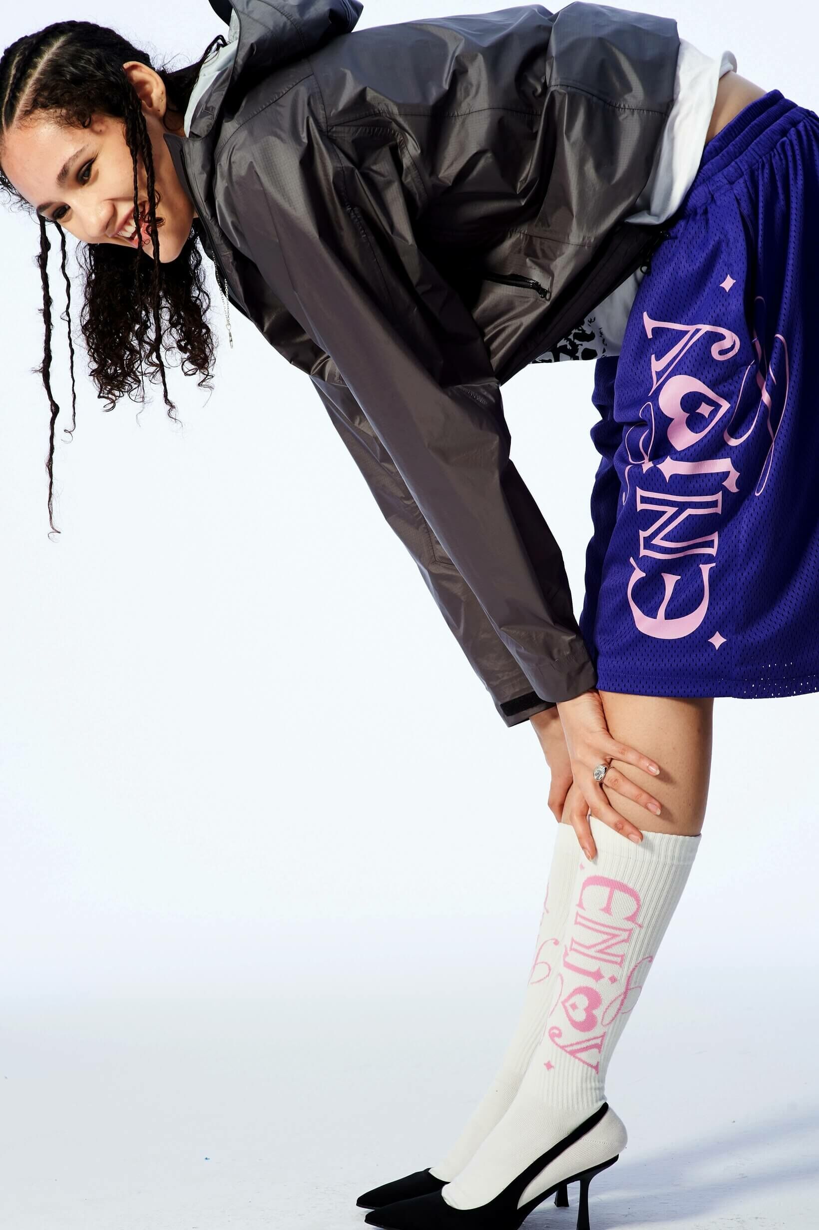 以球場精神結合龐克字體,注入夏日風格。襪身採用純棉材質,提供舒適包覆感與透氣性,搭配側邊編織 LOGO 設計,為整體造型增添街頭氣息。
