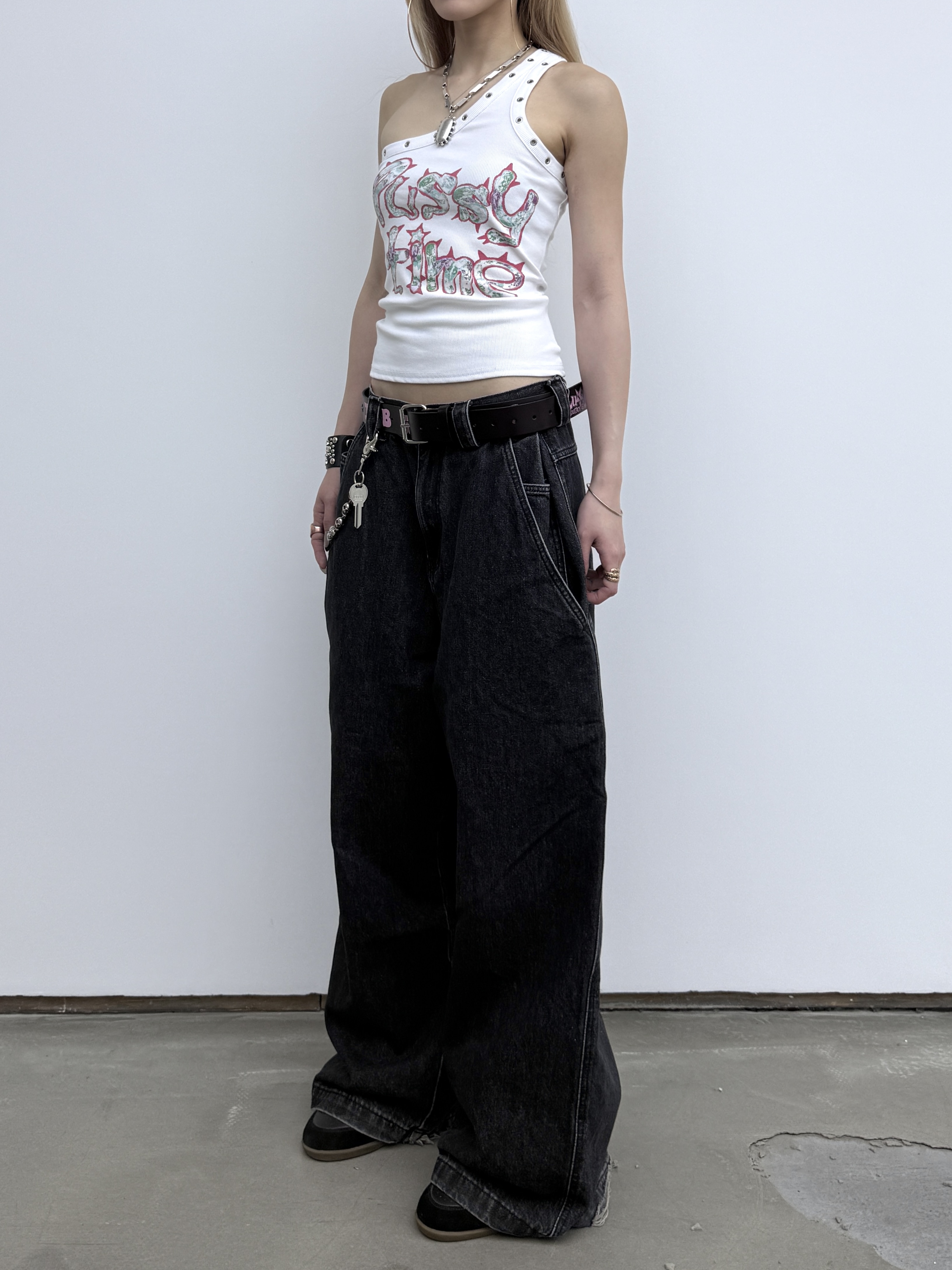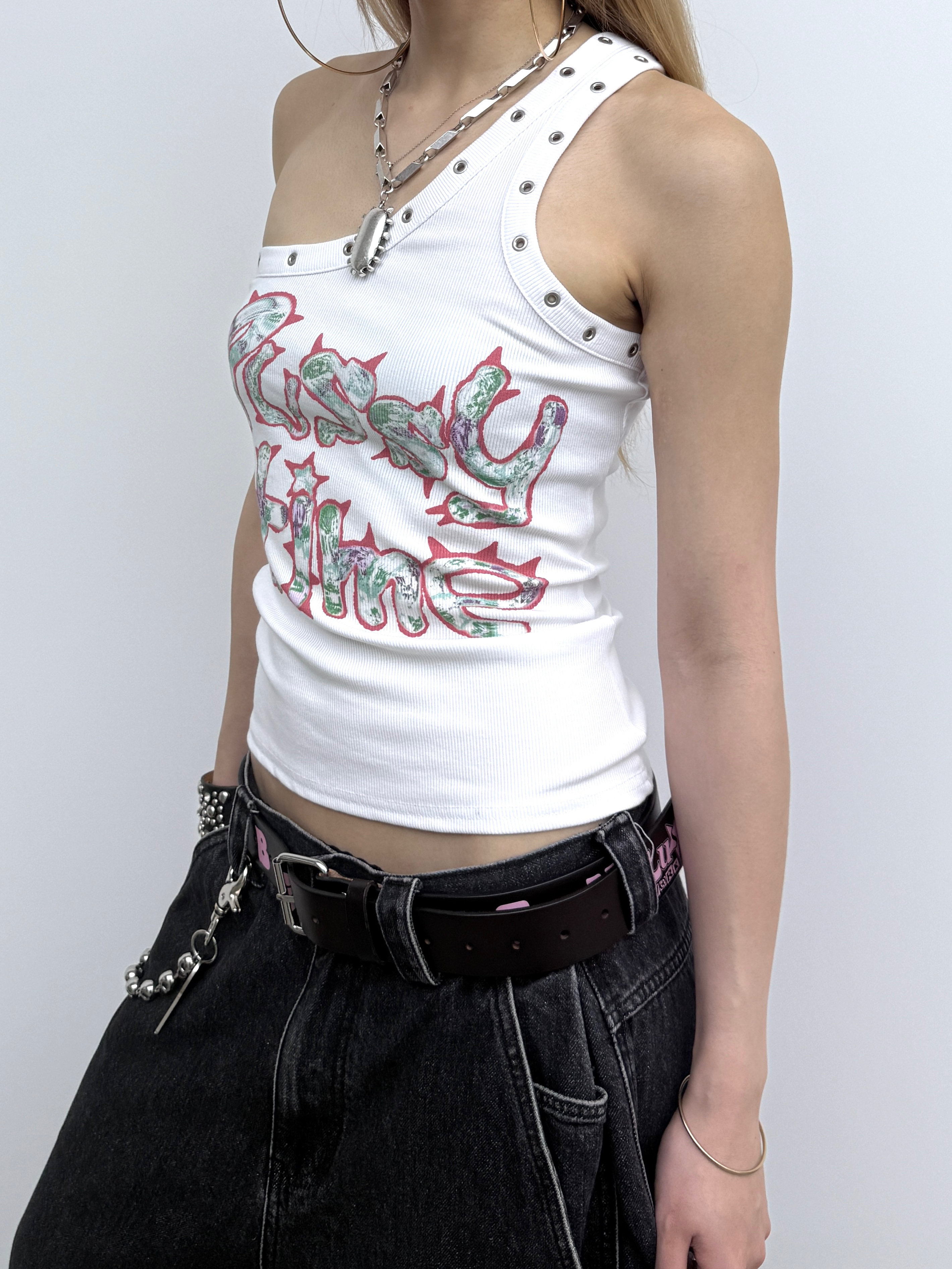商品名稱|Pussy Time grommet Open-shoulder Tank – 金屬扣眼帶刺的時光單肩背心