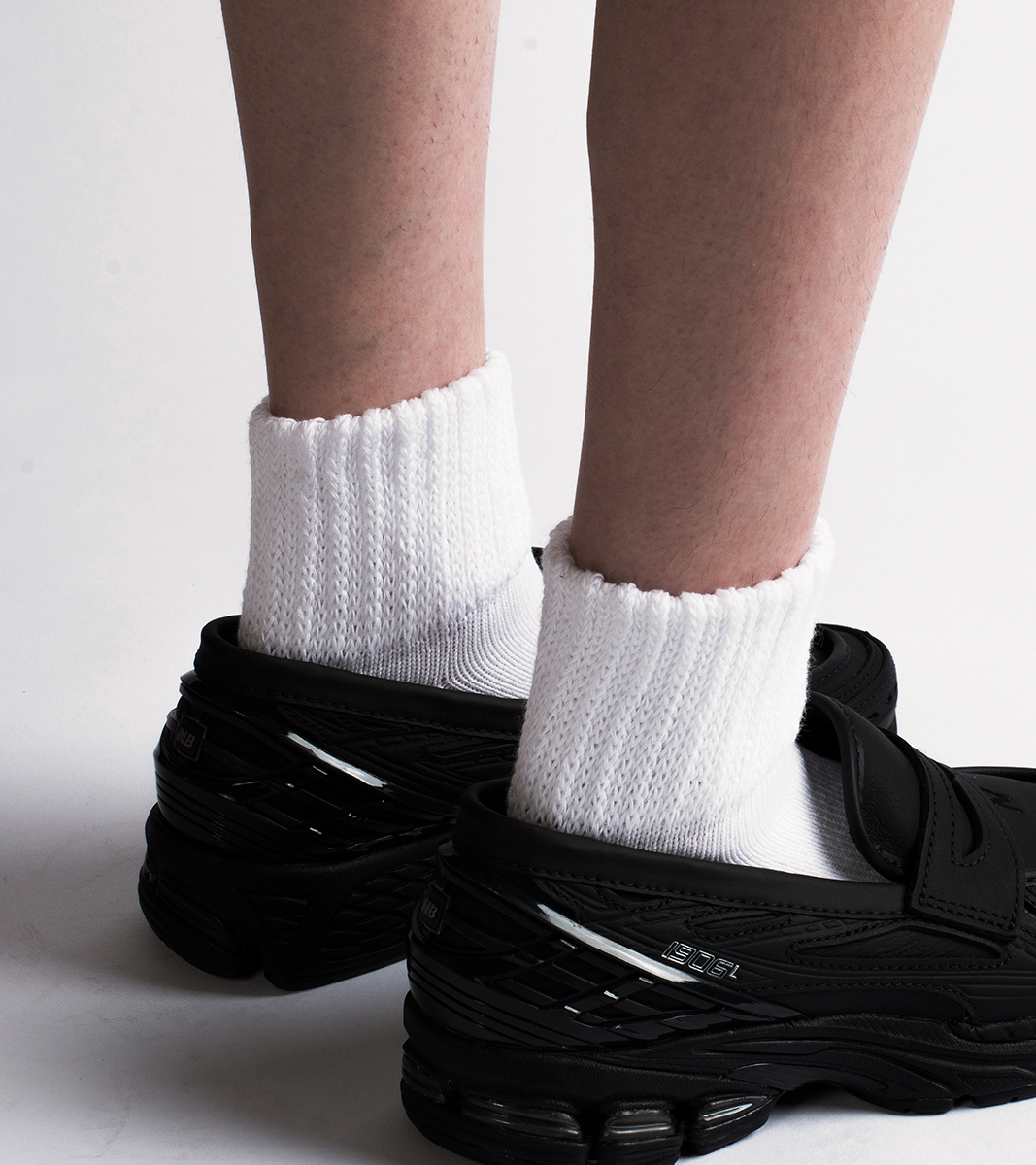 Essential O'skool Low 承襲 O'skool 系列精髓,以剛好包覆腳踝的低筒設計,打造俐落、乾淨的日常輪廓。選用 Siro Spun 賽洛紡棉與 Acteev® 鋅離子抗菌紗,結合 Lycra® 彈性纖維與無縫工藝,實現穩定貼合與乾爽腳感。