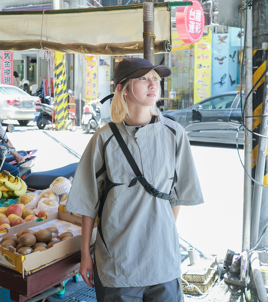 為機能結構增添視覺層次感。搭配風切剪接線與 LOGO 電繡,是實用之上多一層觀察力的帽款選擇。