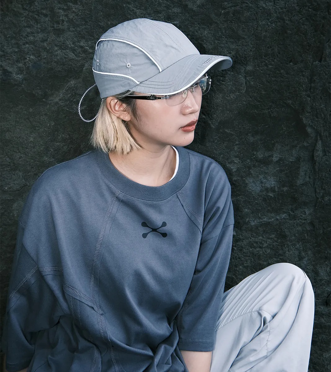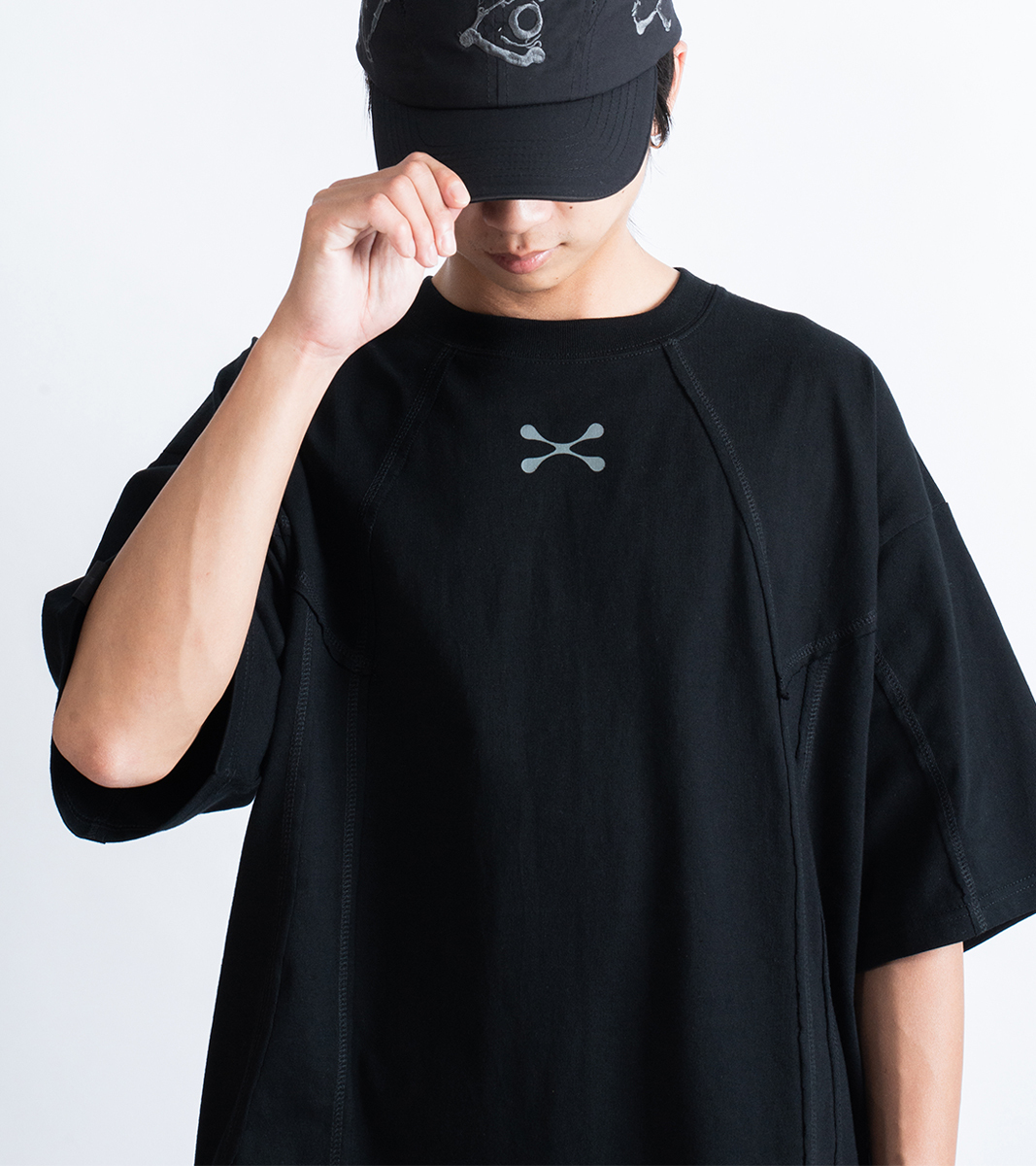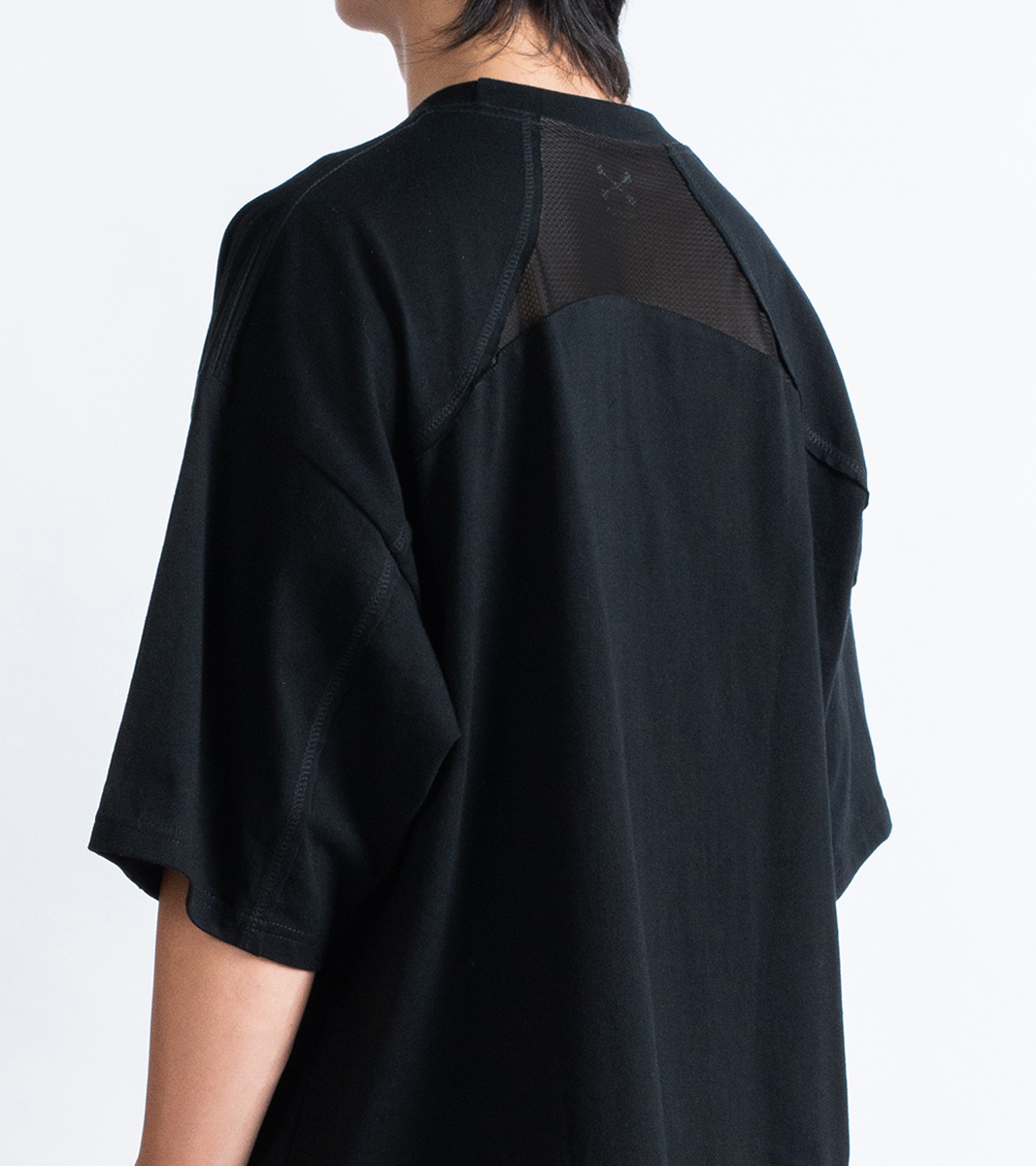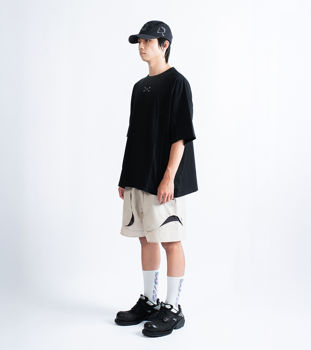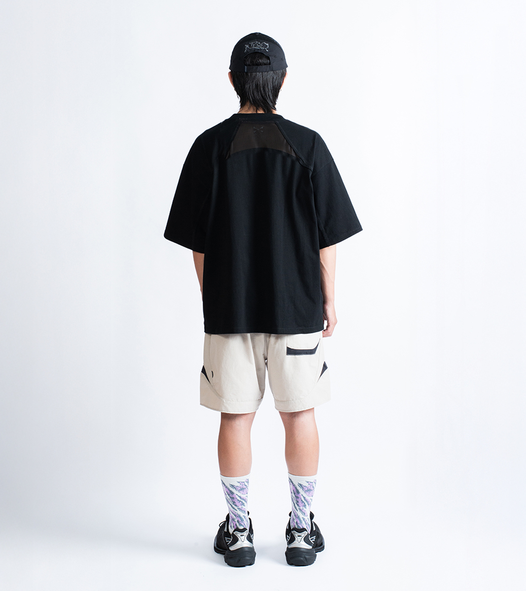 展現 nozzle quiz 標誌性設計語彙,採用 BOXY 輪廓與後背網布拼接設計,提供自在穿著與清爽透氣感。多片裁剪與不收邊細節層層堆疊,營造俐落個性的視覺張力。