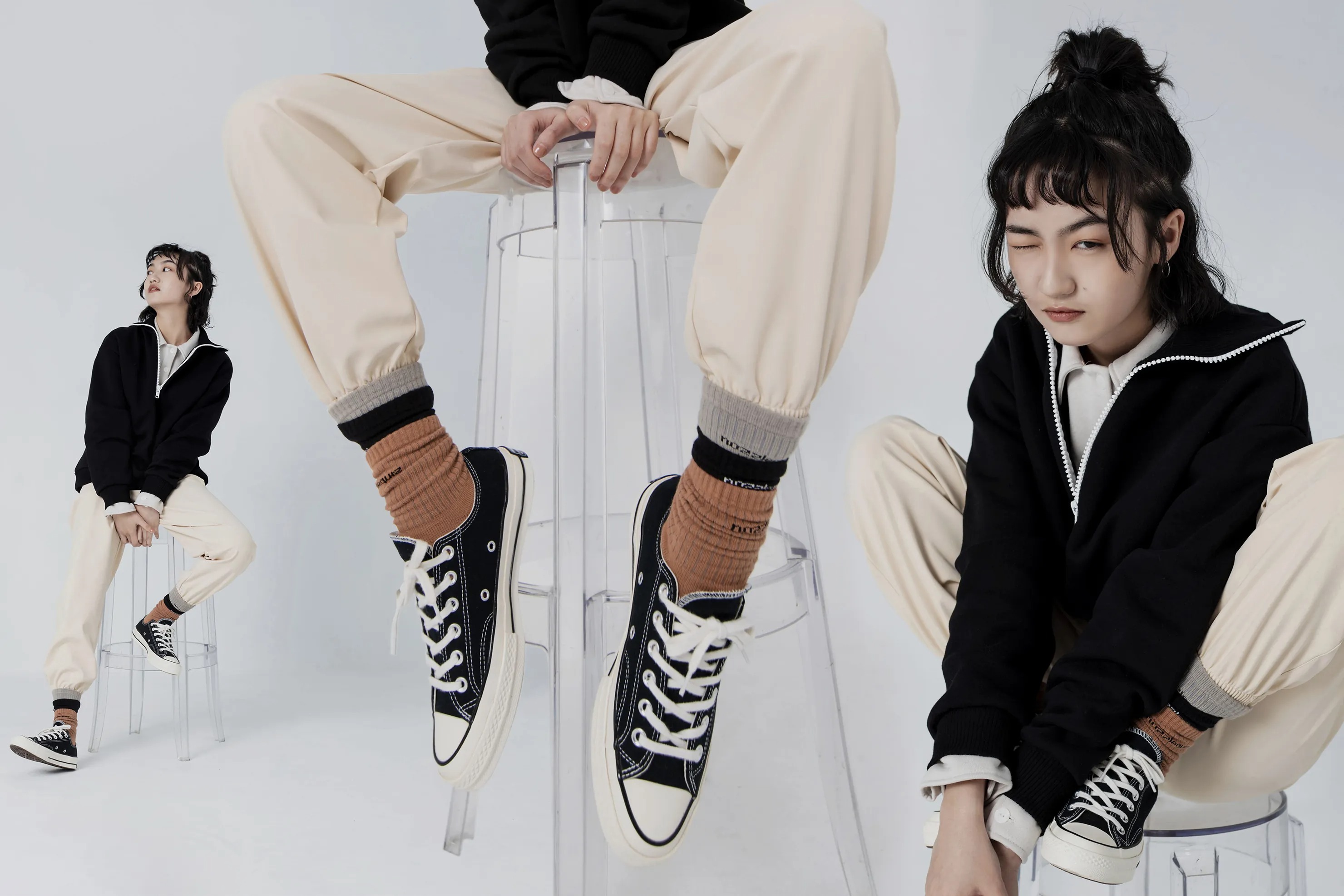 本次 Editorial 邀請近期頗受日系雜誌青睞的 Guava 演繹三組穿搭風格,橫跨運動休閒、寬鬆 Loose Fit 風格及正裝混搭,各組造型以多層的系列襪款混和搭配,造型間呼應Essential襪履的活力與率性態度,也展現其泛用風格的搭配性,同時多層次穿法也為春夏造型增添可搭性。