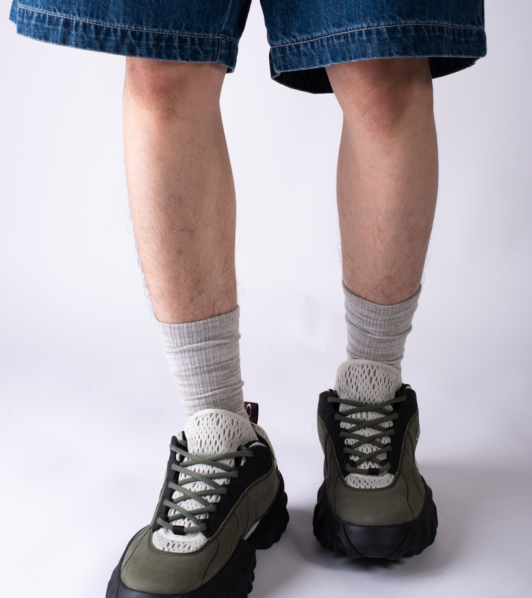 日常時通常穿上帶有沙漠偽裝色的簡便襪款,隨時輕便上街。每款色調不盡相同,像是不同時間與地點的荒漠色。