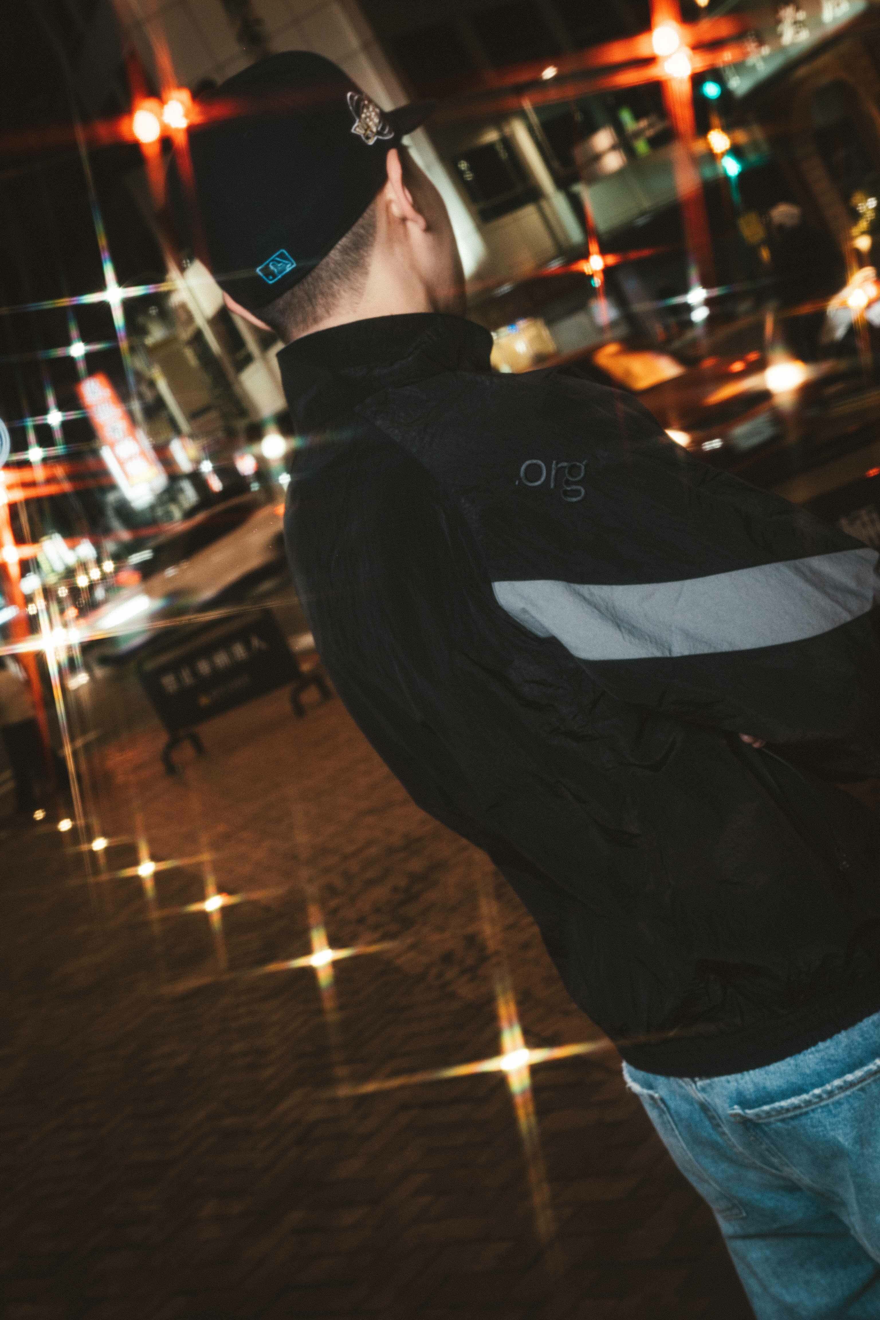 _.org logo embroidery on right back sleeve