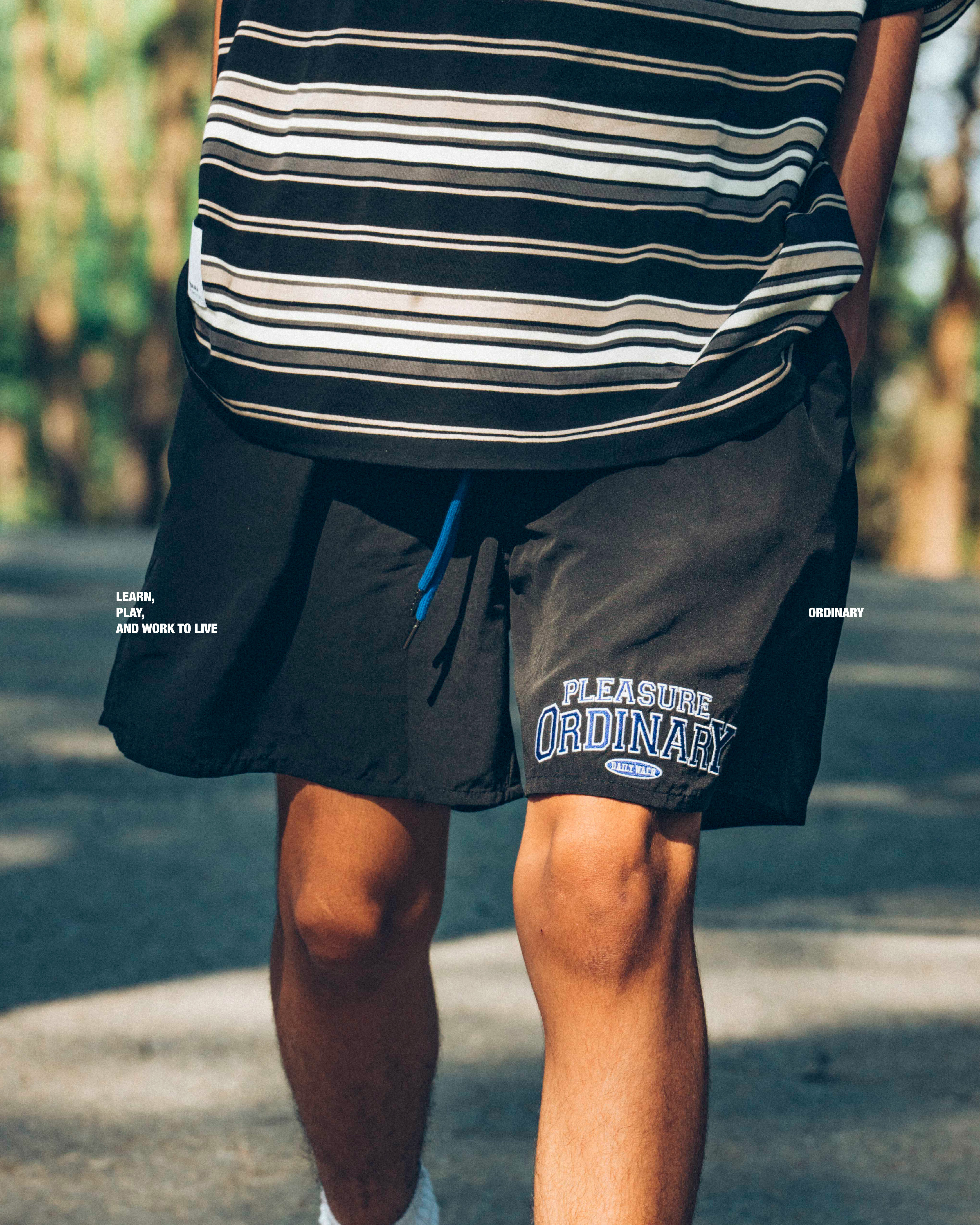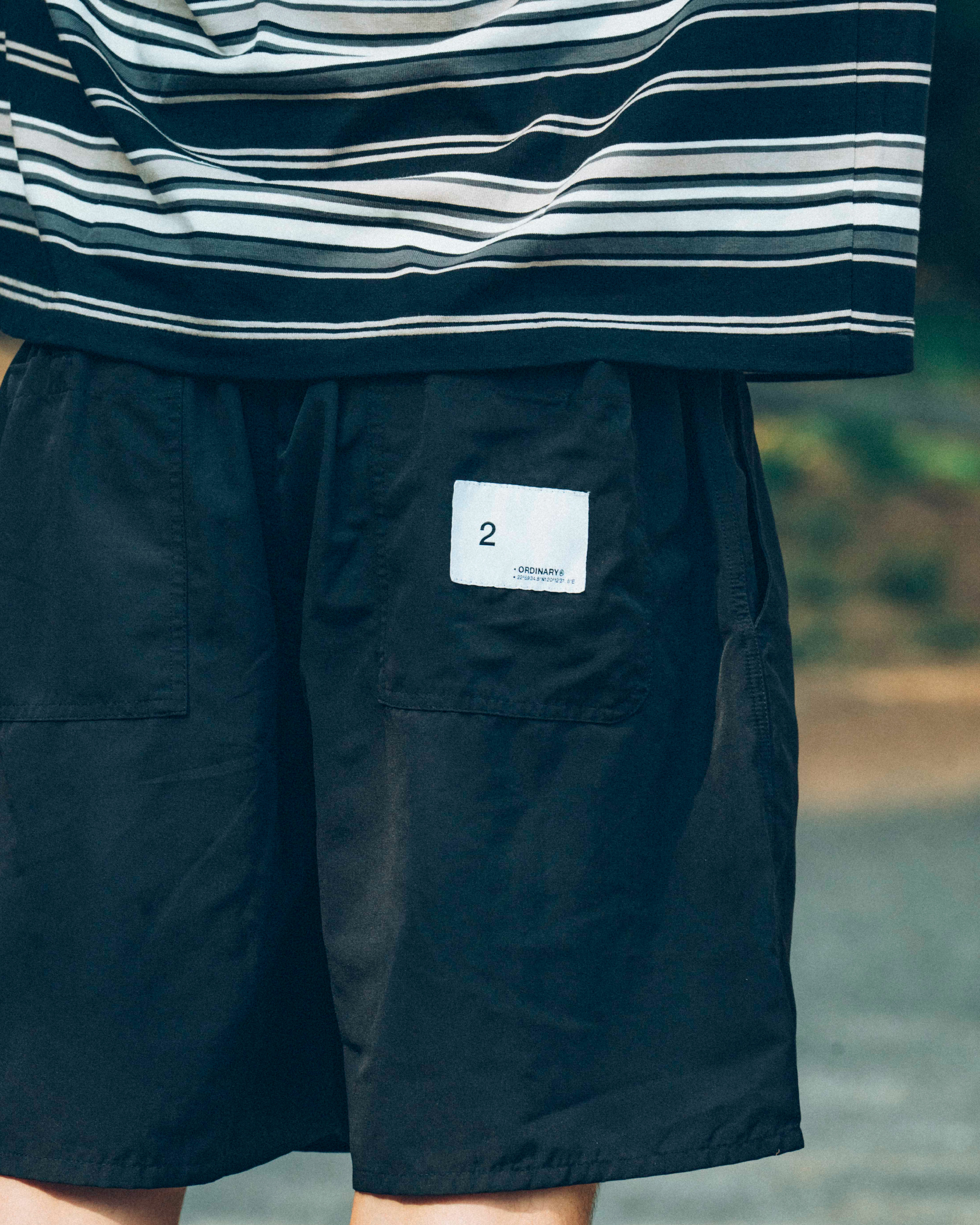 ORDINARY / WATER-REPELLENT SHORTS 防潑水字體刺繡五分衝浪短褲 -