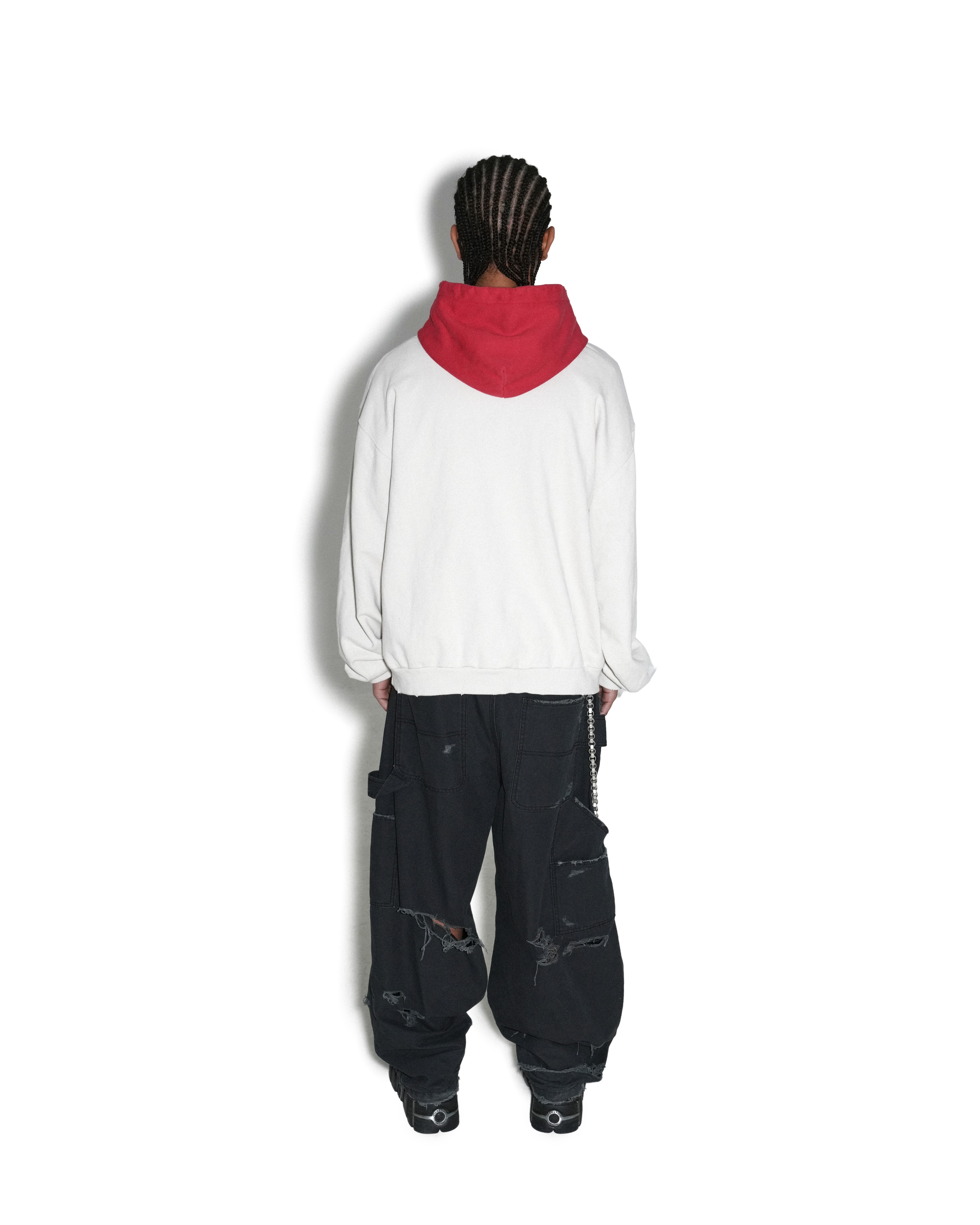 來自「New Throwback」系列,本款工裝褲以寬鬆輪廓結合重工破壞與工匠細節,打造未來街頭感。側邊配有鐵槌環與貼袋,整體呈現極具層次的做舊風格。